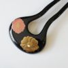 4. 本漆純金蒔絵螺鈿かんざし 幅広輪ピン 椿文様(黒色)