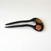 本漆純金蒔絵螺鈿かんざし 幅広輪ピン 椿文様(黒色)