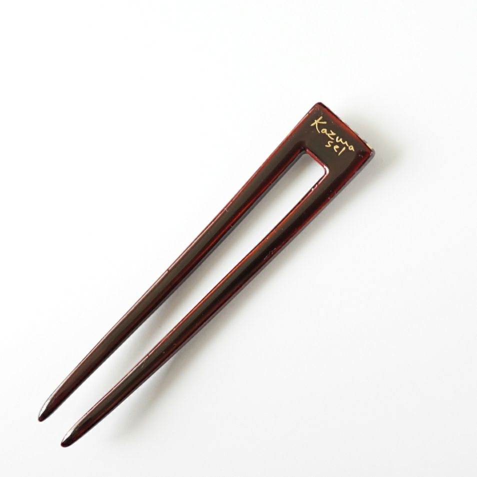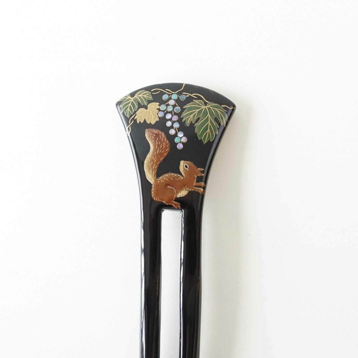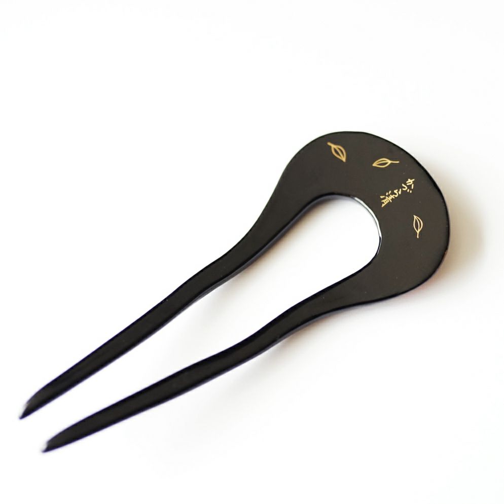 本漆純金蒔絵螺鈿かんざし 波型ピン(小) 白玉椿唐草文様