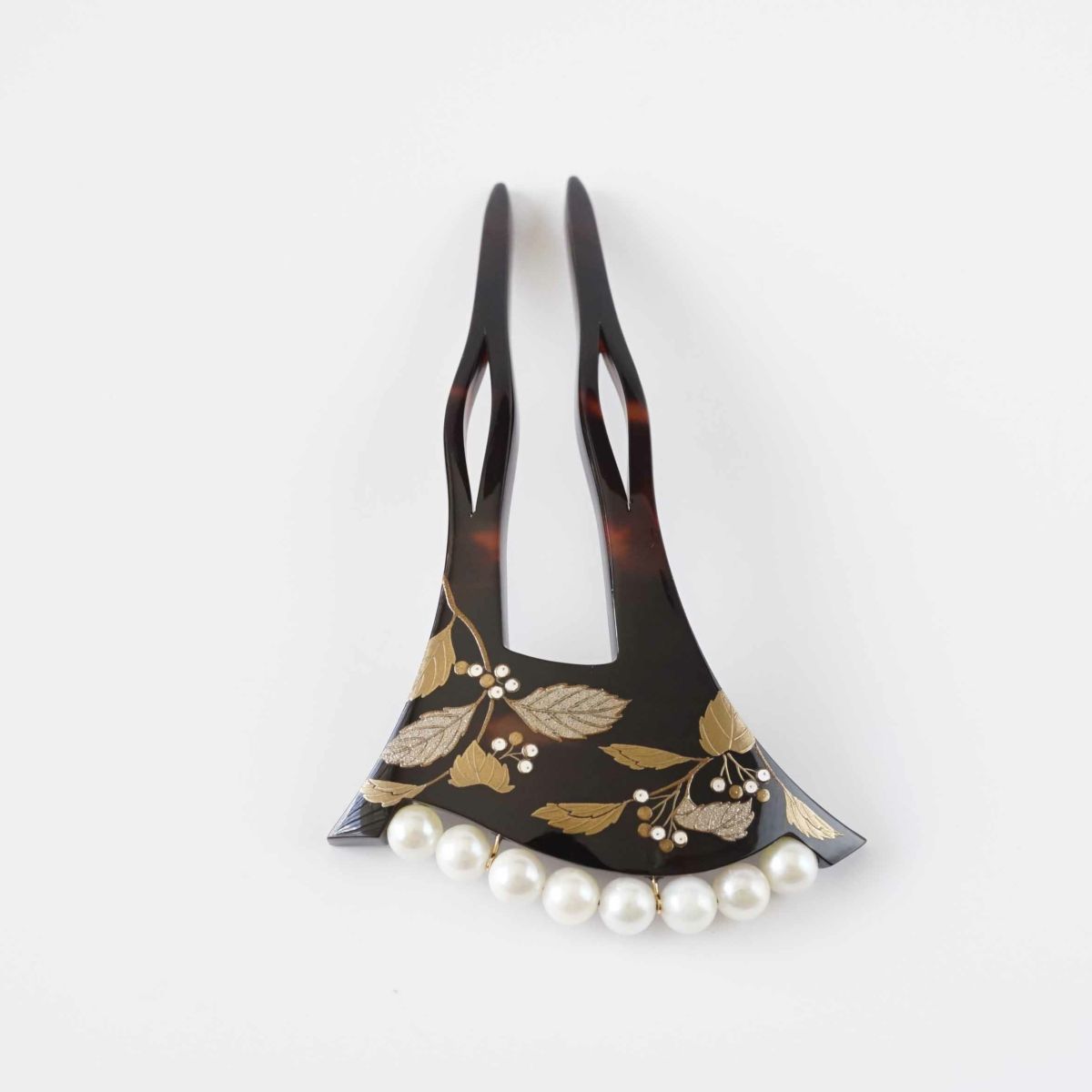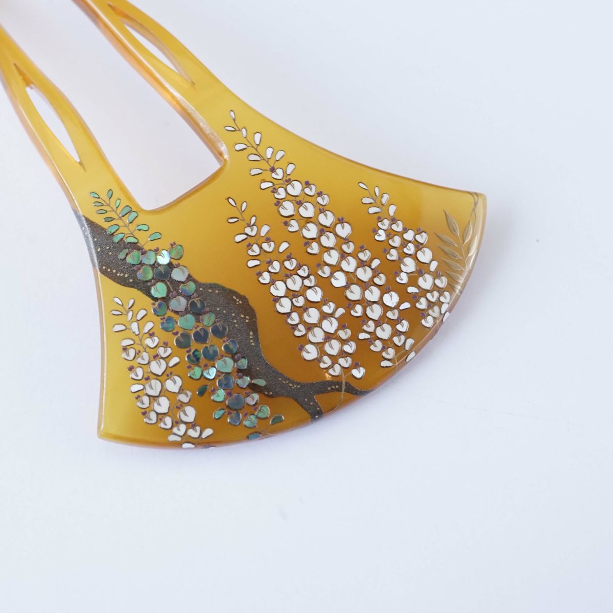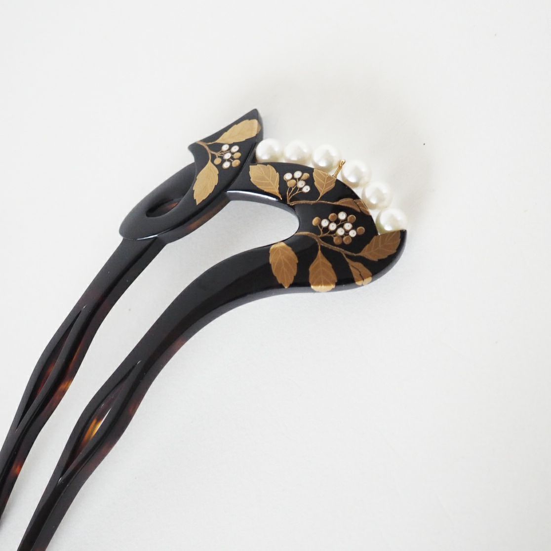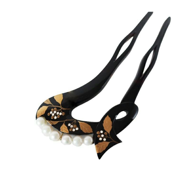 本漆純金蒔絵螺鈿かんざし 銀杏ピン 正倉院文様