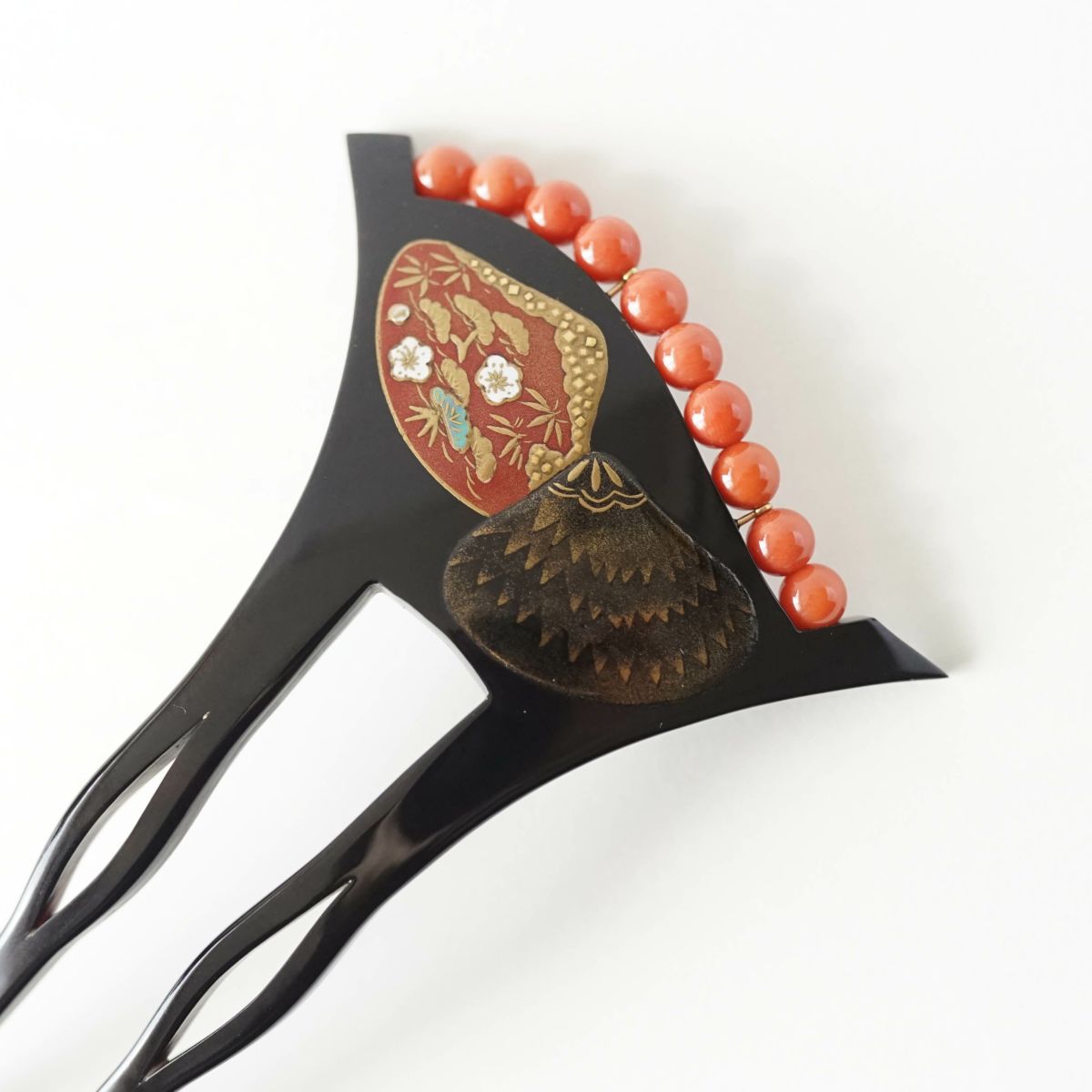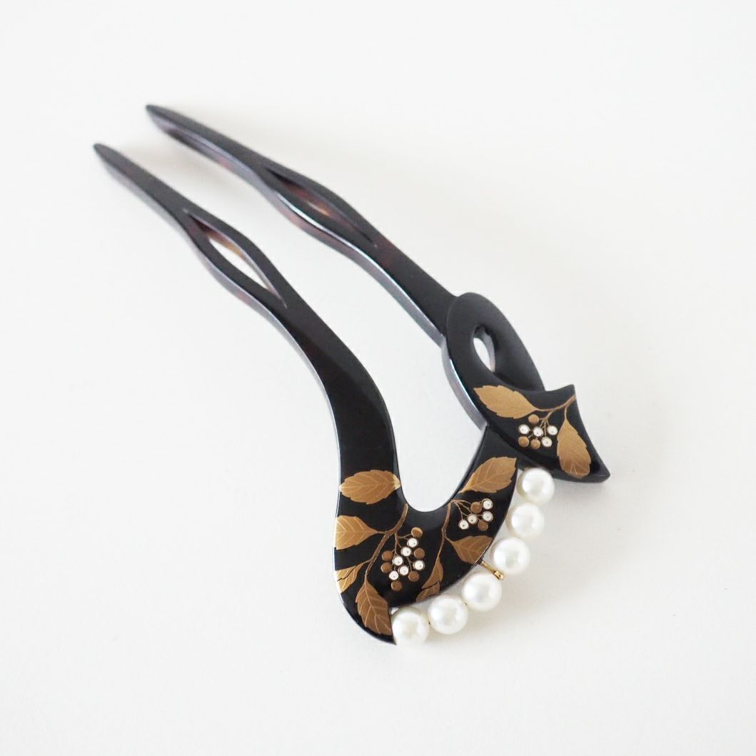 本漆純金蒔絵螺鈿かんざし 波型ピン(中) 王朝文様