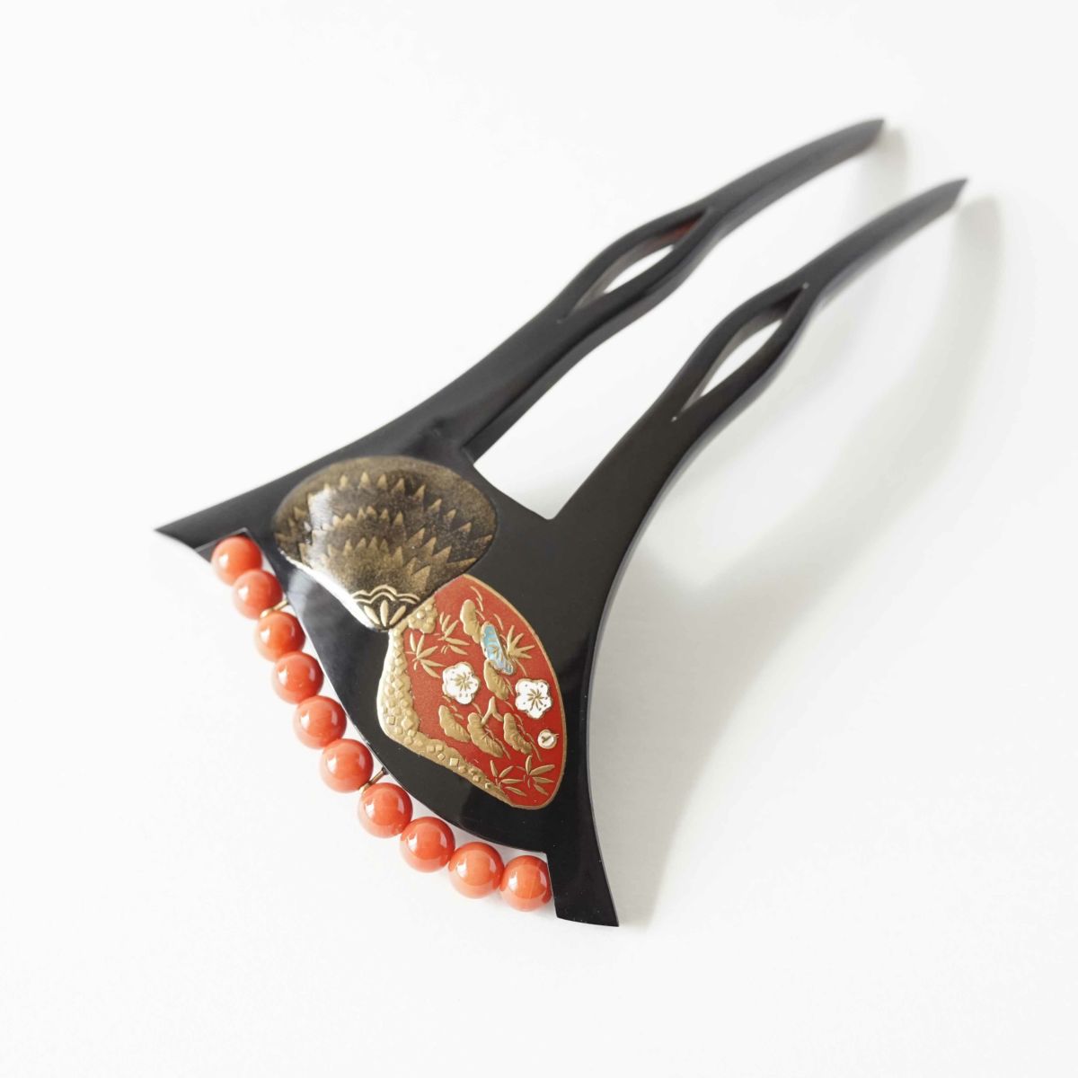本漆純金蒔絵螺鈿かんざし 銀杏ピン 胡蝶蘭文様