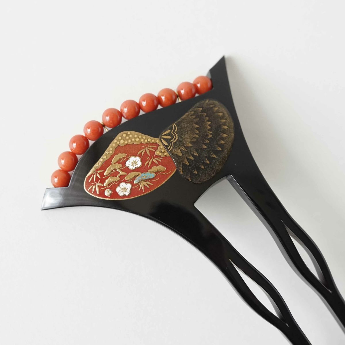 本漆純金蒔絵螺鈿かんざし 波型ピン(中)正倉院文様