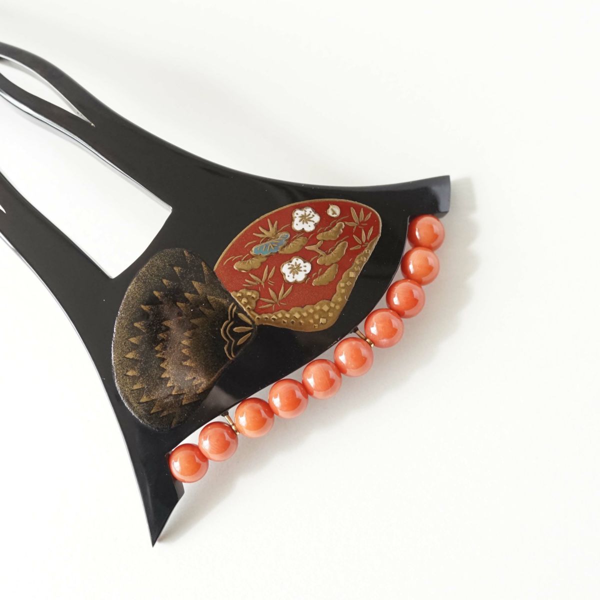本漆純金蒔絵螺鈿かんざし 輪ピン(中) 正倉院文様