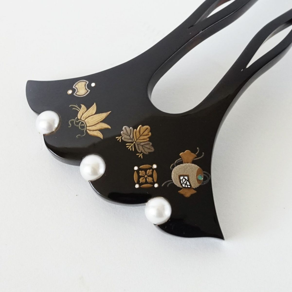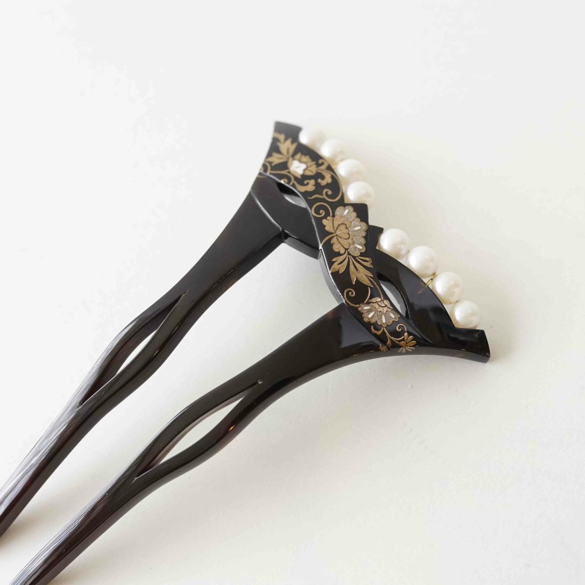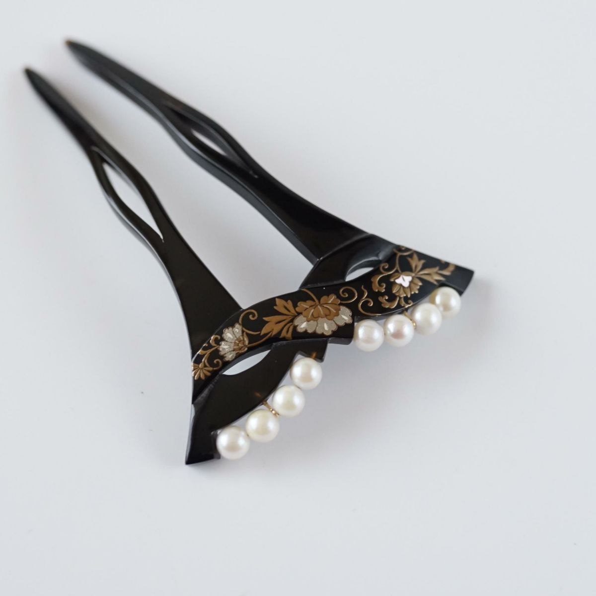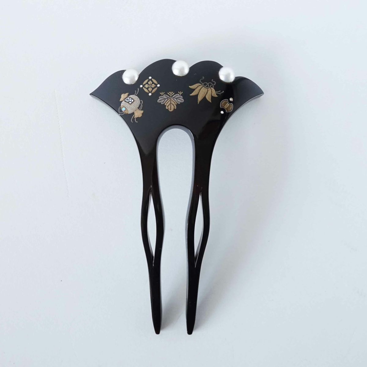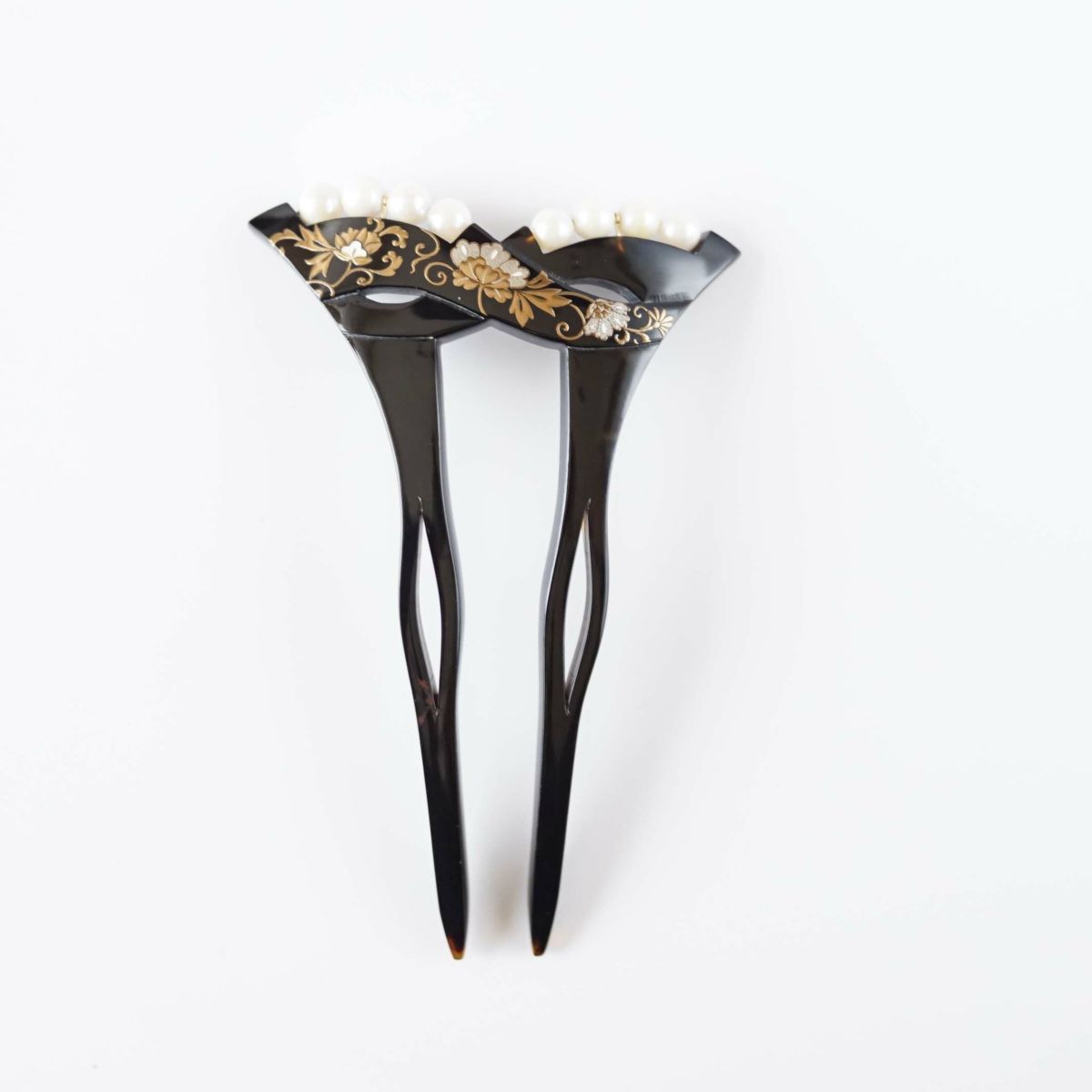 本漆純金蒔絵螺鈿かんざし 波型ピン(小) 正倉院華紋
