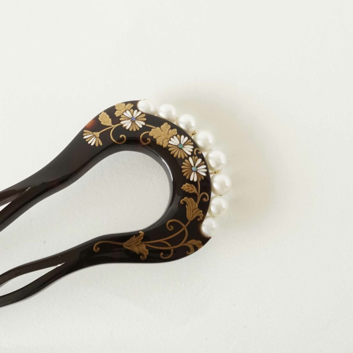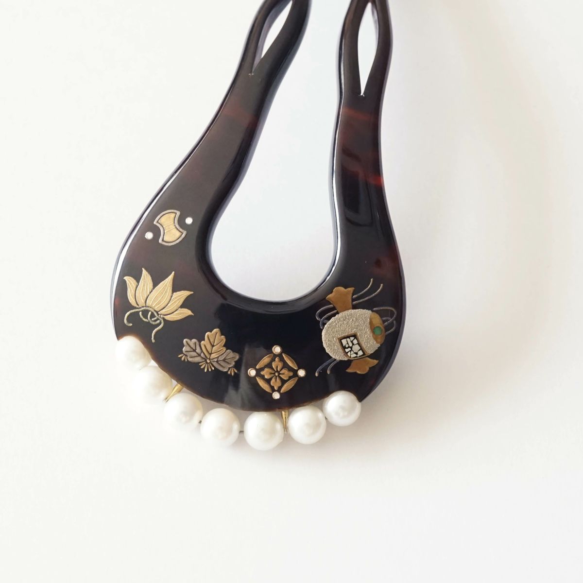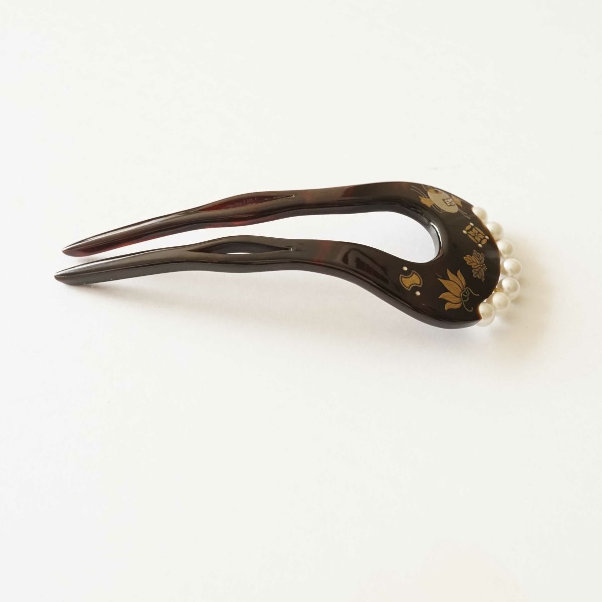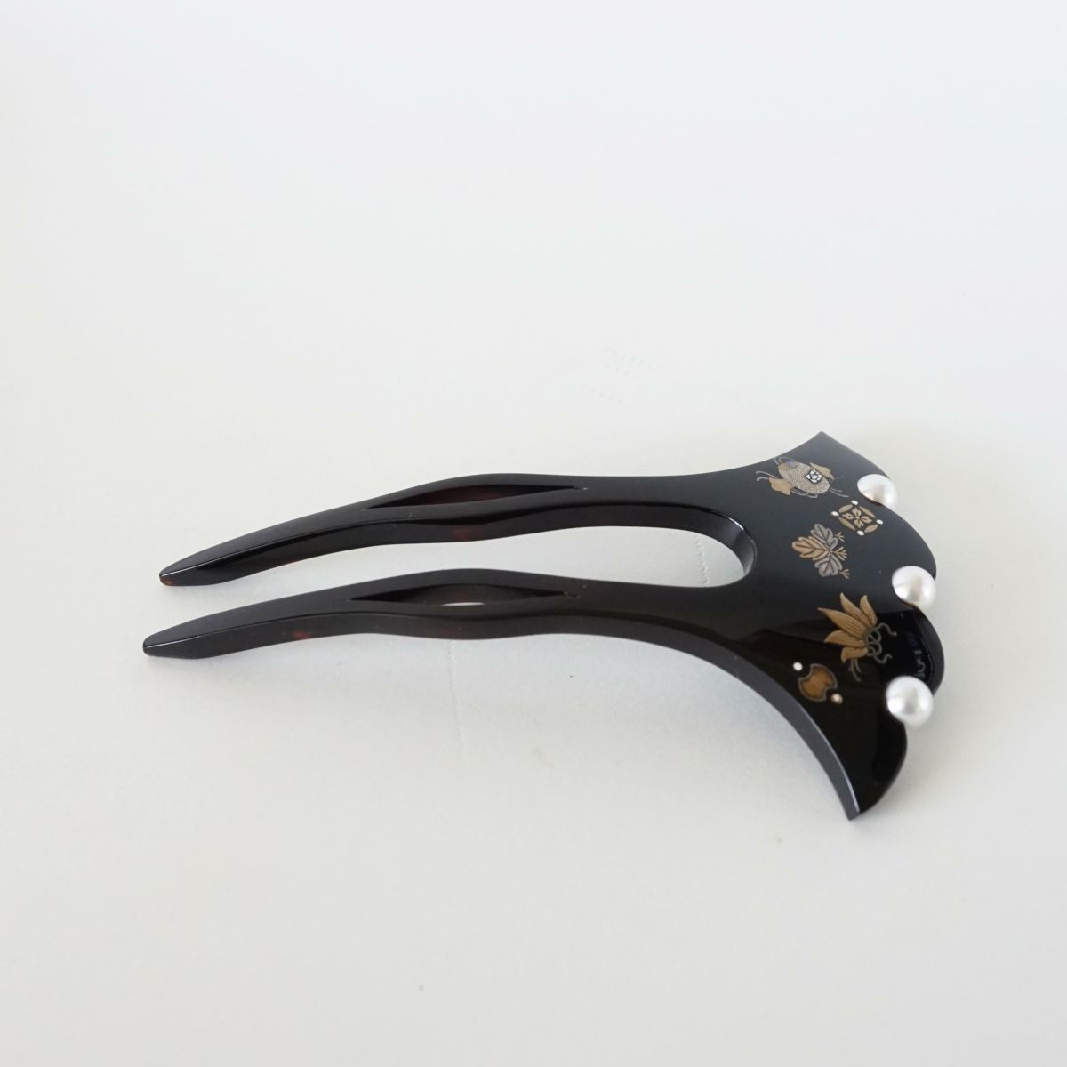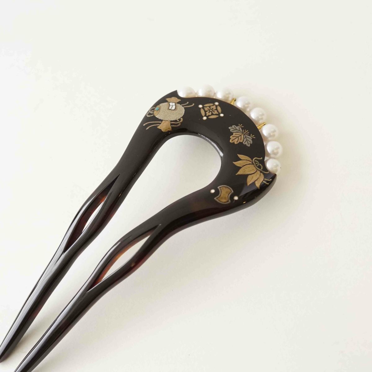 本漆純金蒔絵螺鈿かんざし 波型ピン(小) 正倉院華紋