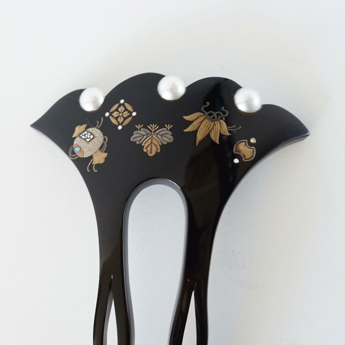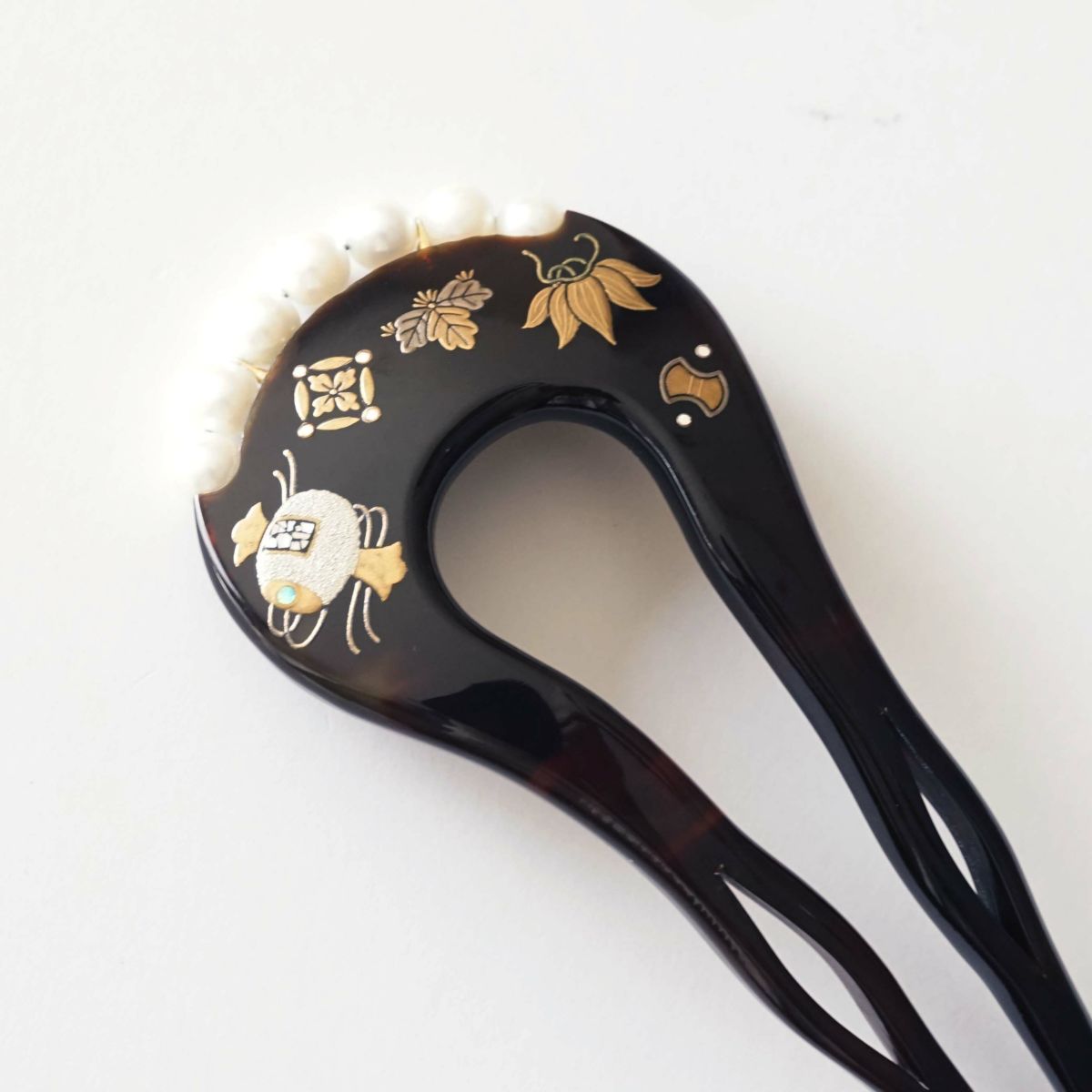 本漆純金蒔絵螺鈿かんざし 波型ピン(小) 宝尽くし文様(白蝶貝・プラチナ)