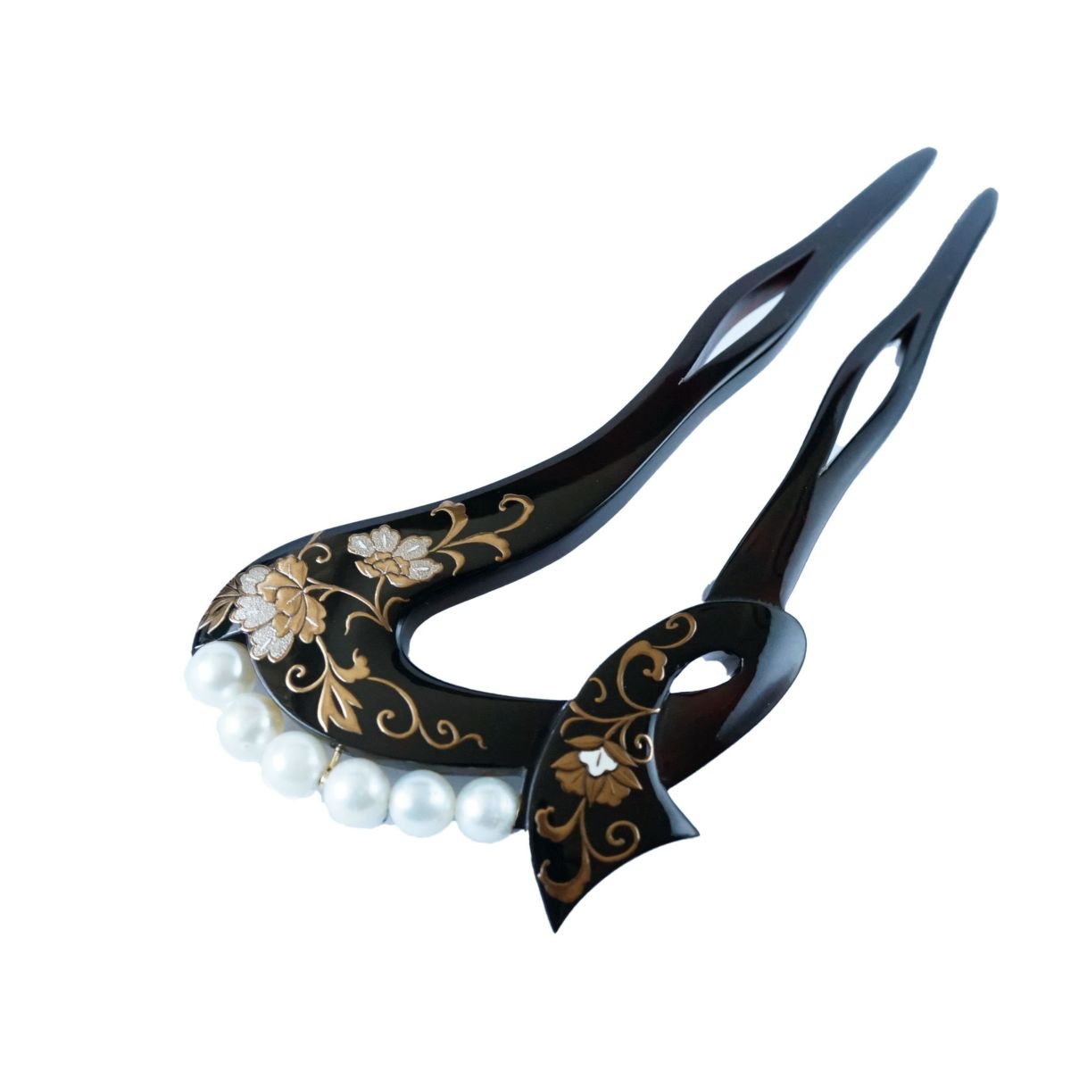 本漆純金蒔絵螺鈿かんざし 波型ピン(中) 牡丹文様