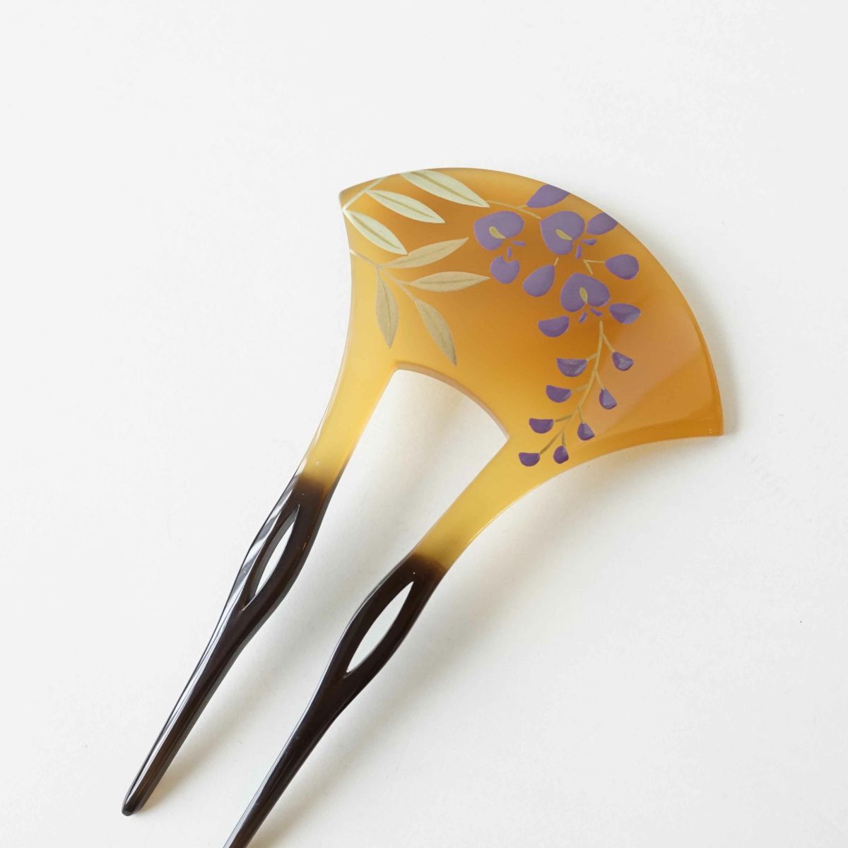 本漆純金蒔絵螺鈿かんざし 変型輪ピン 胡蝶蘭文様