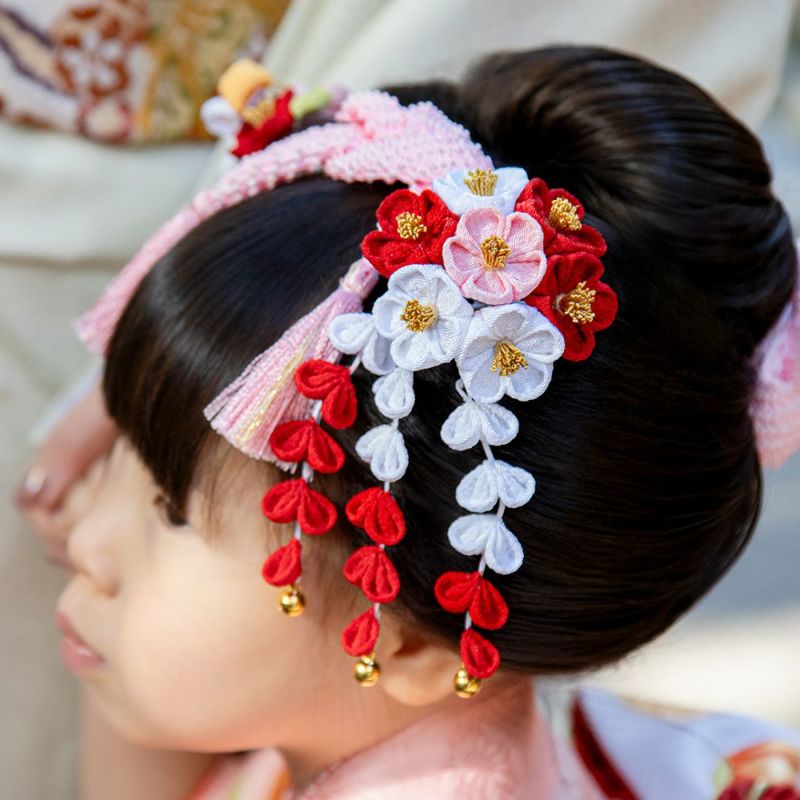 そんな日本古来の色彩でちりめんを染め上げ、まねのできない伝統の技で創りあげました髪かざりです。