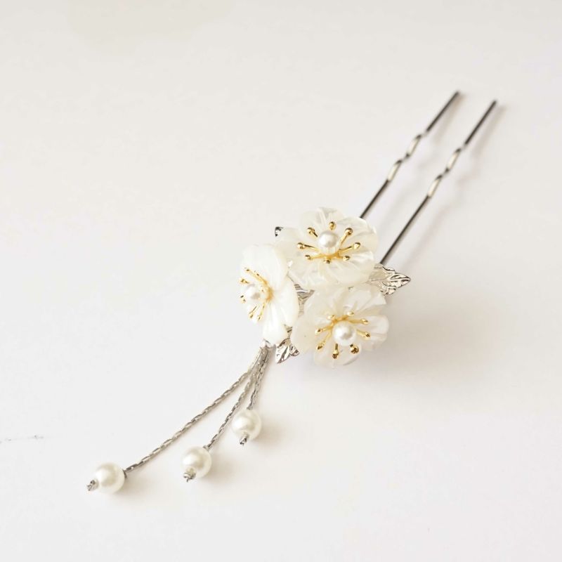 4. 白蝶貝桜三輪 かんざし(パール下がり付き)
