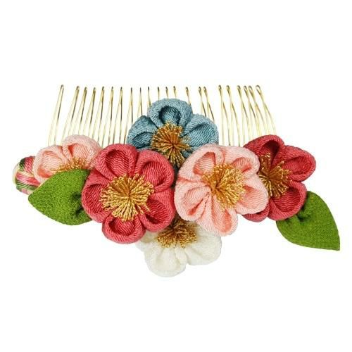 そんな日本古来の色彩でちりめんを染め上げ、まねのできない伝統の技で創りあげました髪かざりです。
