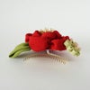 そんな日本古来の色彩でちりめんを染め上げ、まねのできない伝統の技で創りあげました髪かざりです。