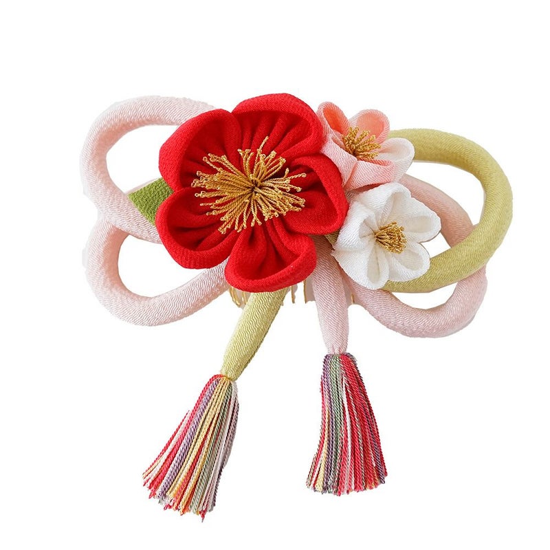 そんな日本古来の色彩でちりめんを染め上げ、まねのできない伝統の技で創りあげました髪かざりです。