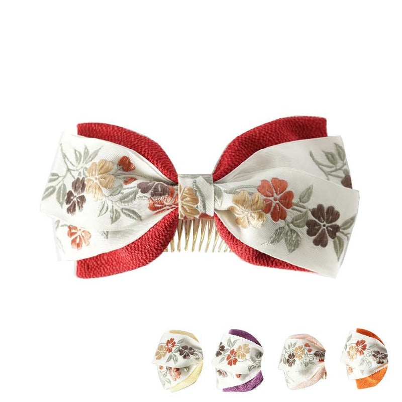 淡雪と梅丸ぐけリボンコーム(ひわ色)