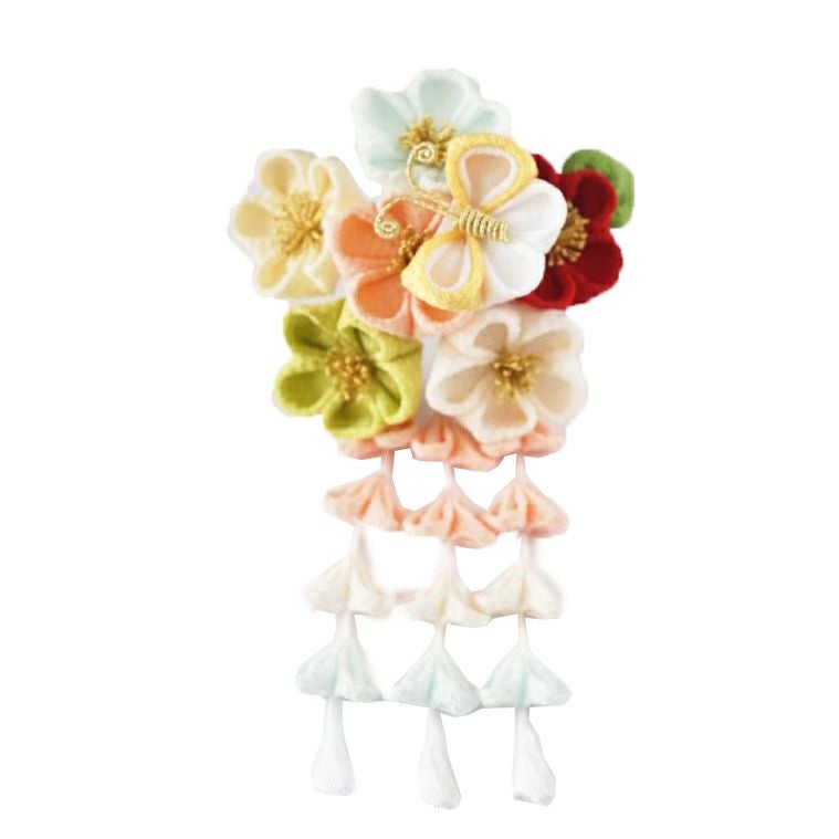 5. 蝶付き六輪梅かんざし 下がり付き (パステル)
