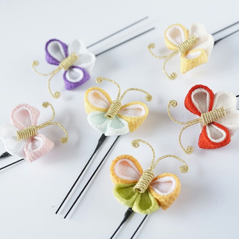 極上の丹後ちりめんを使用した可愛らしい蝶のミニピンです。