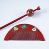 5. 本漆純金蒔絵螺鈿かんざし 櫛・玉かんセット 橘文様(赤色)