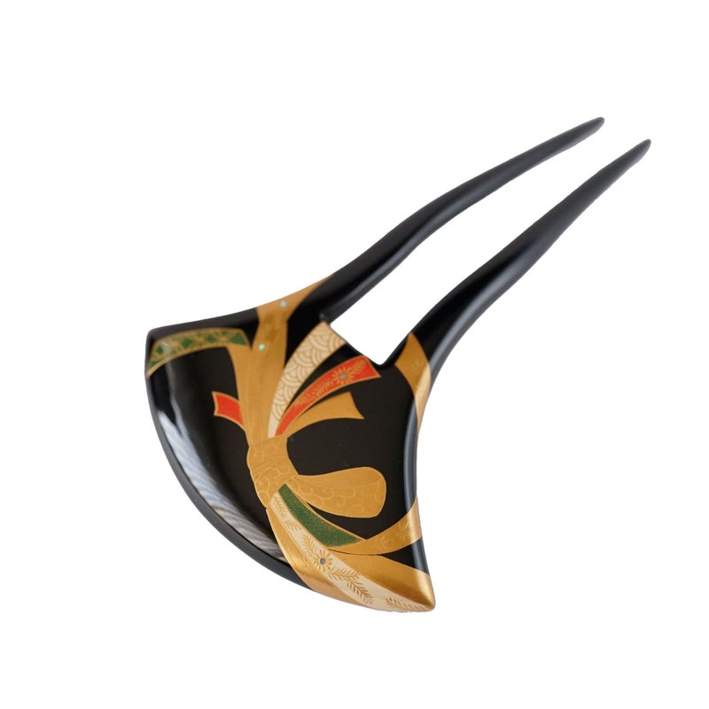 本漆純金蒔絵螺鈿かんざし 波型ピン(中) 宝尽くし文様