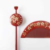 本漆純金蒔絵螺鈿 櫛・平打ちセット 桜文様(朱)