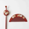 本漆純金蒔絵螺鈿 櫛・平打ちセット 八重桜文様 (朱)