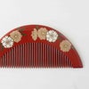 5. 本漆純金蒔絵螺鈿 櫛・平打ちセット 八重桜文様 (朱)