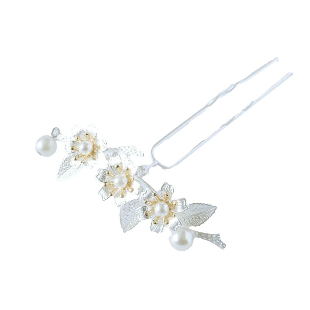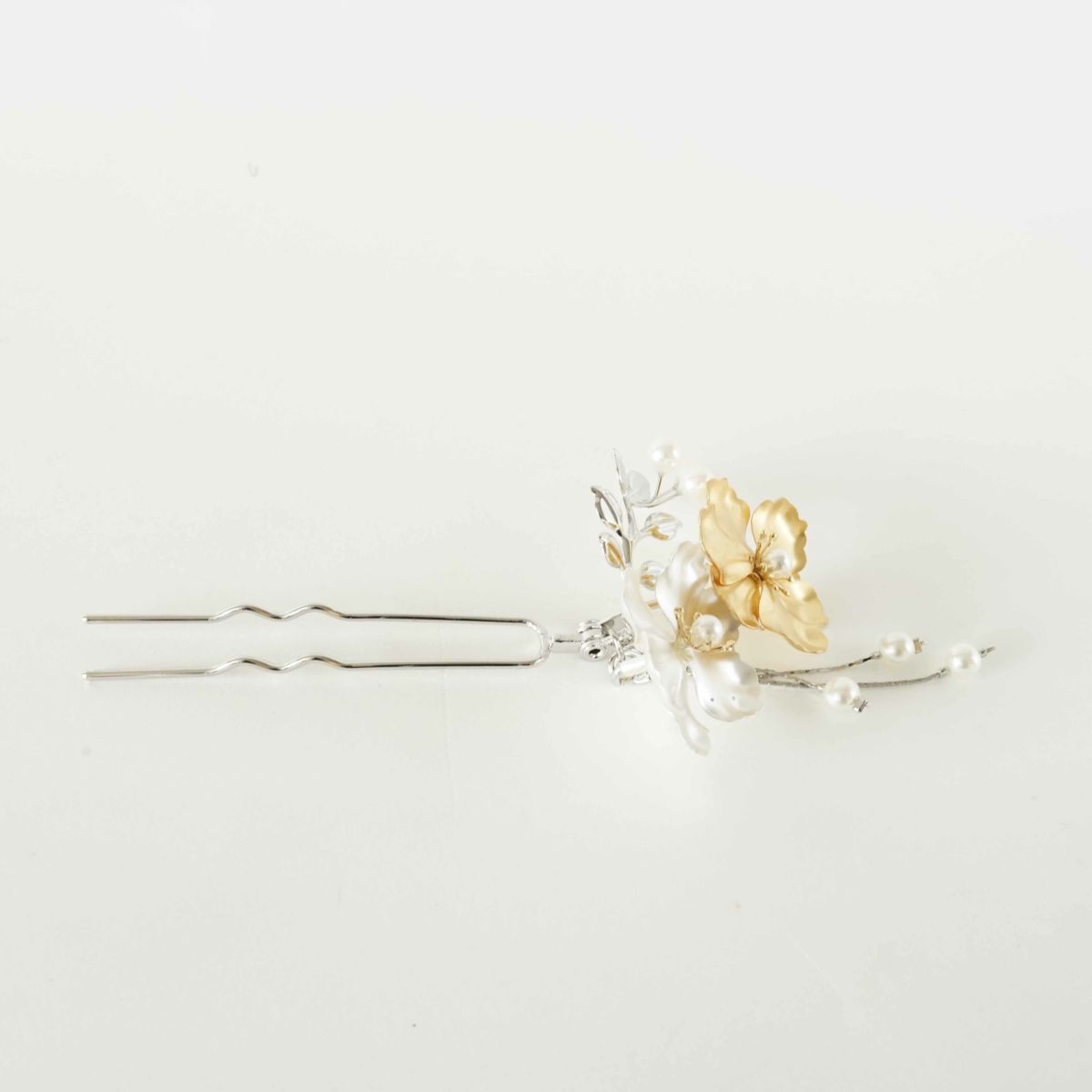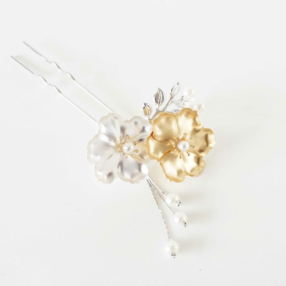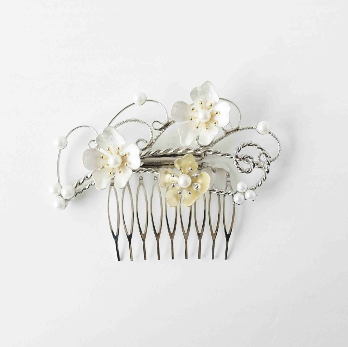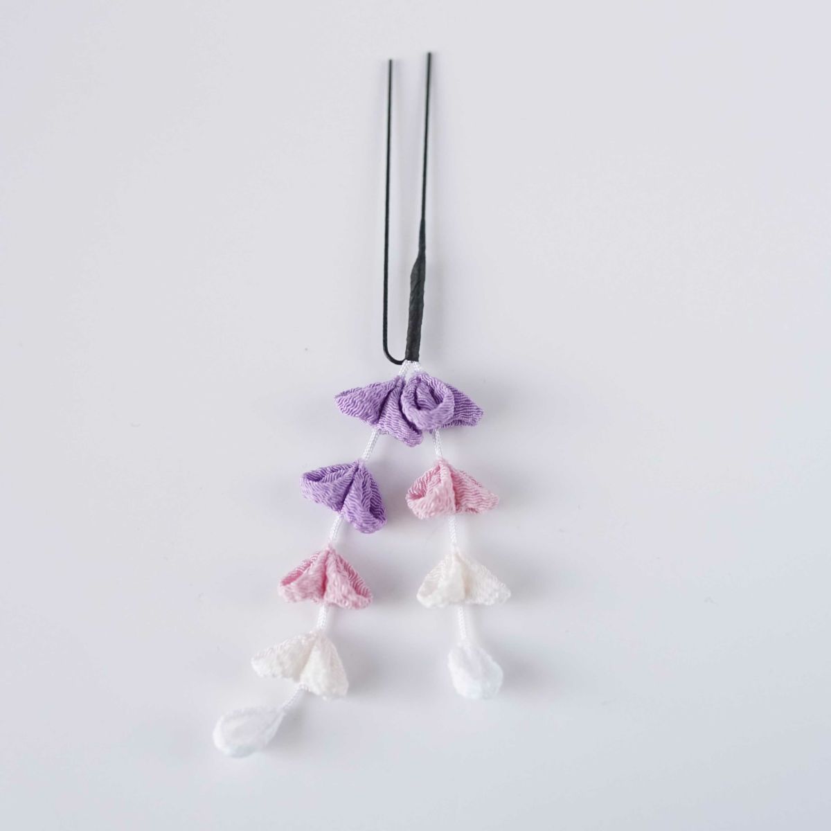 白蝶貝桔梗三輪 花月かんざし(パール下がり付き)