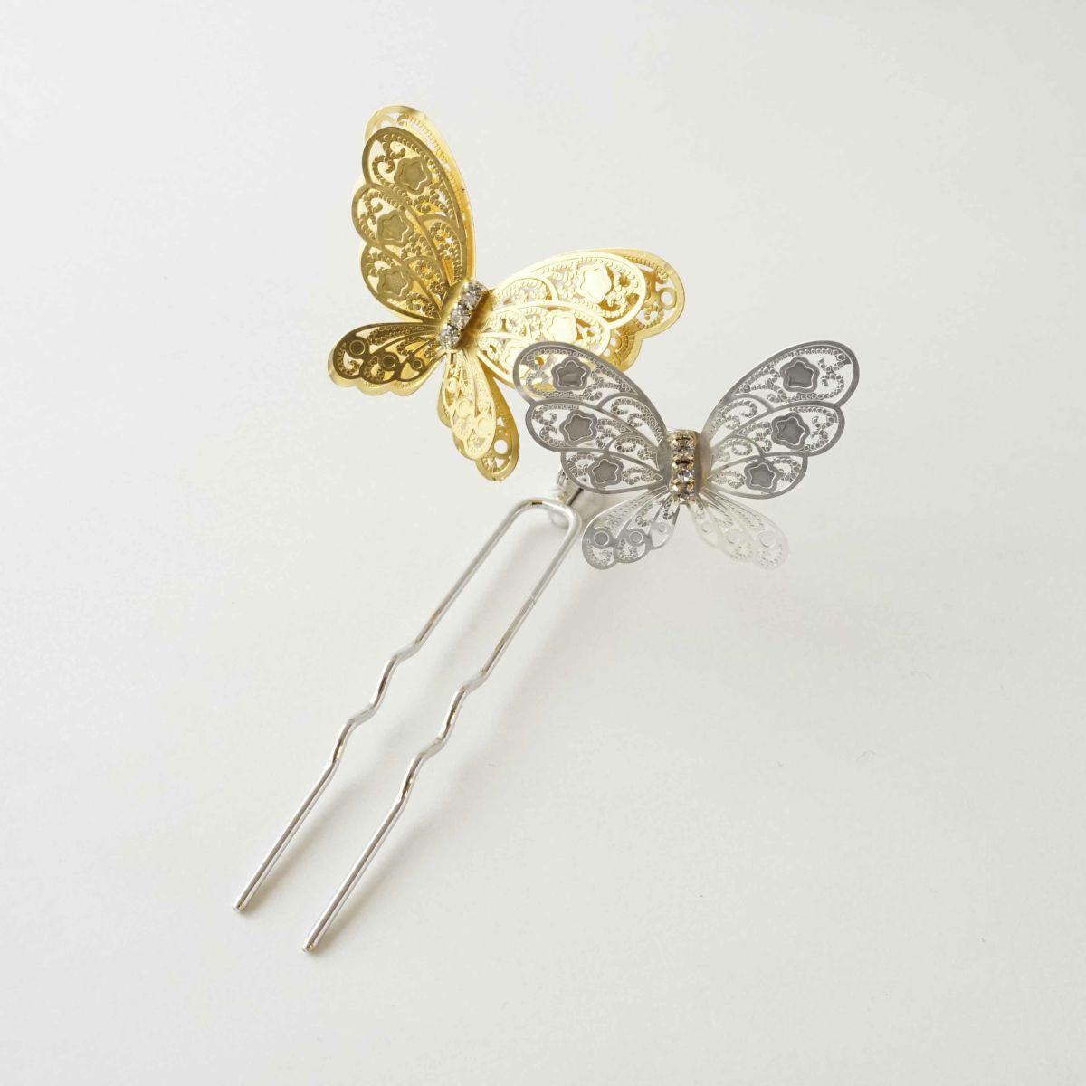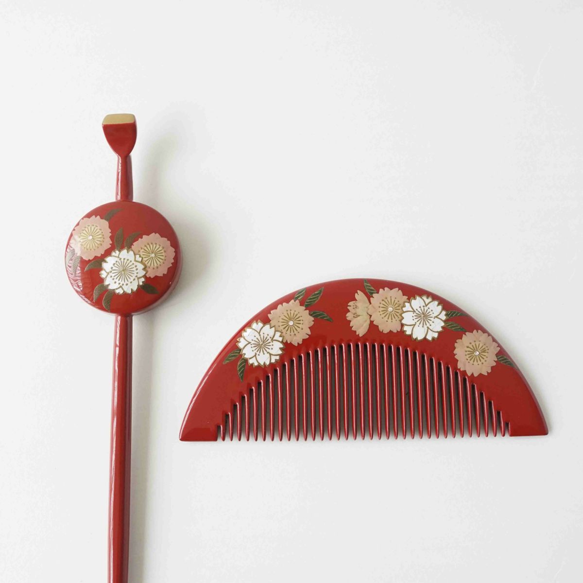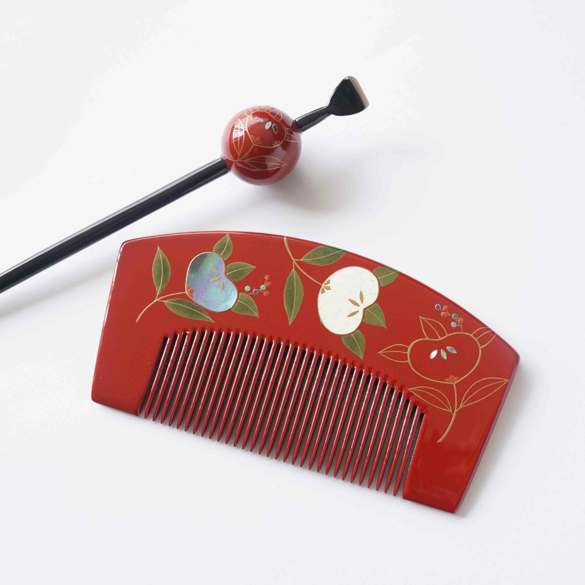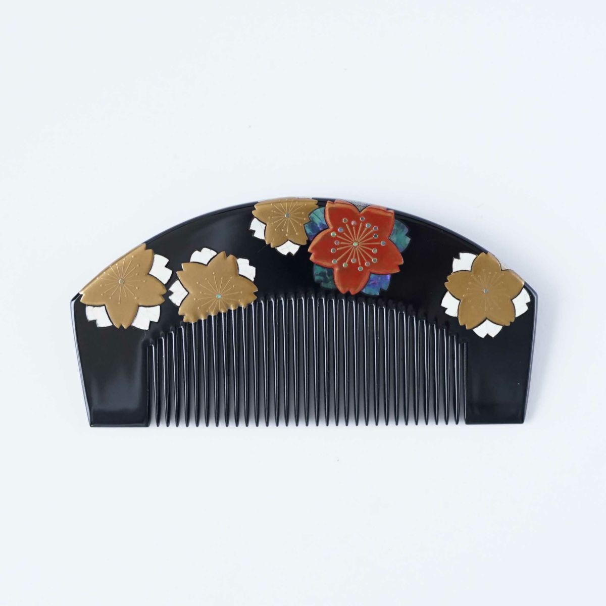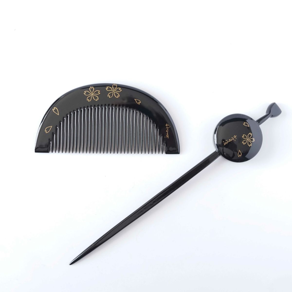 本漆純金蒔絵螺鈿 櫛・平打ちセット 蝶文様(白蝶貝)