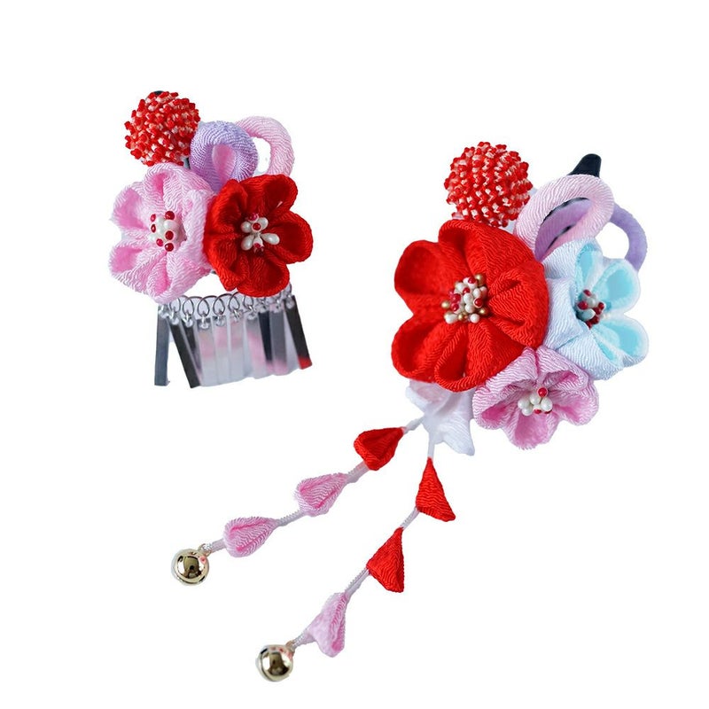 大きさの違う梅と鹿の子玉が可愛らしい七五三用髪飾り
