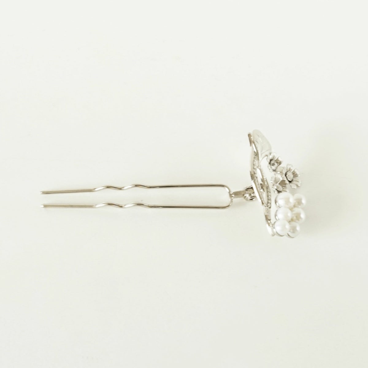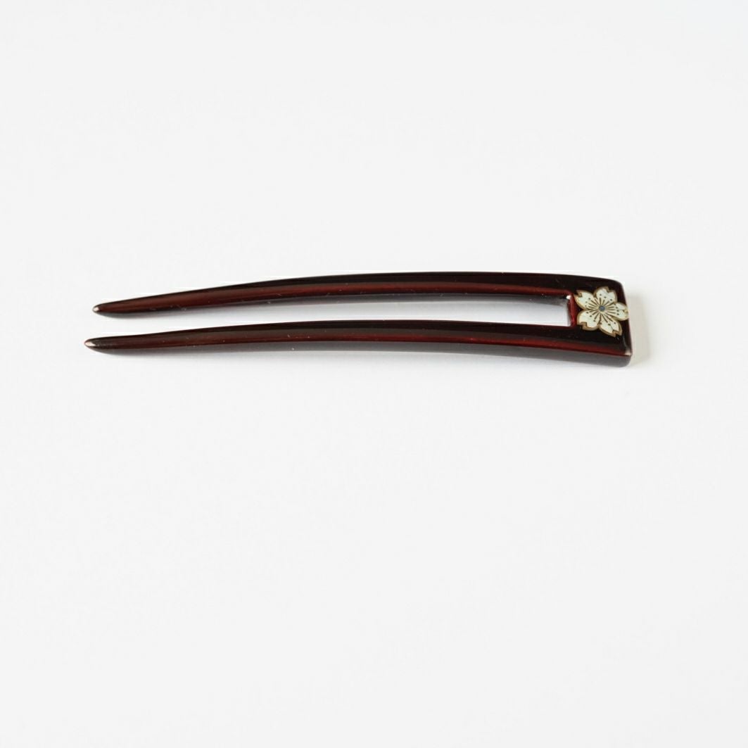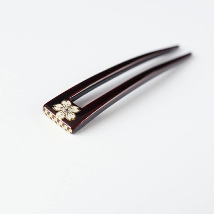 本漆純金蒔絵螺鈿かんざし 波型ピン(小) 白玉椿唐草文様