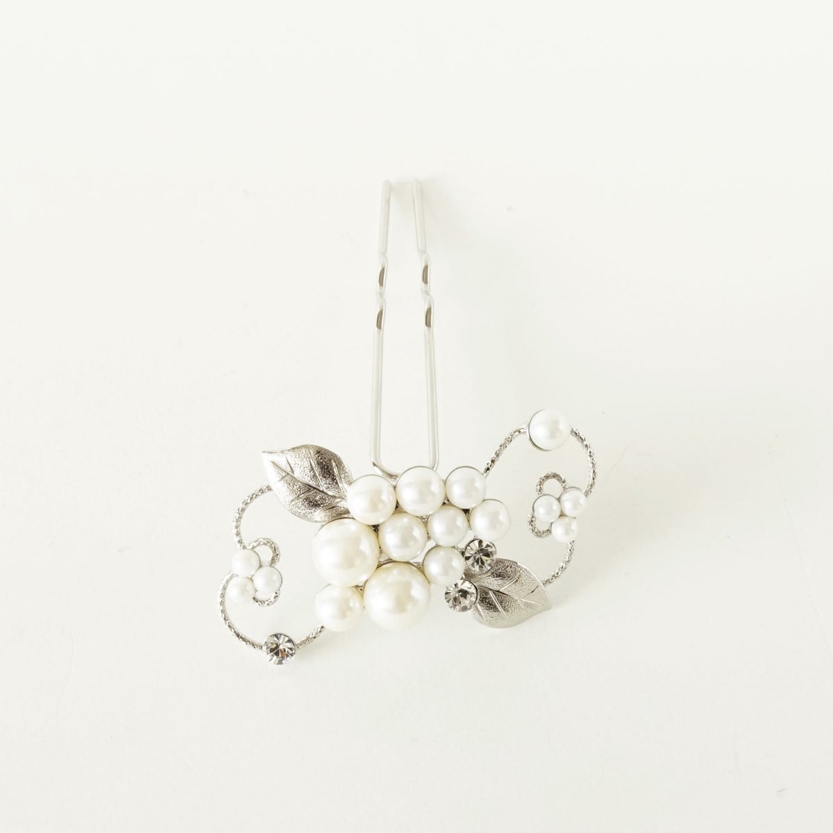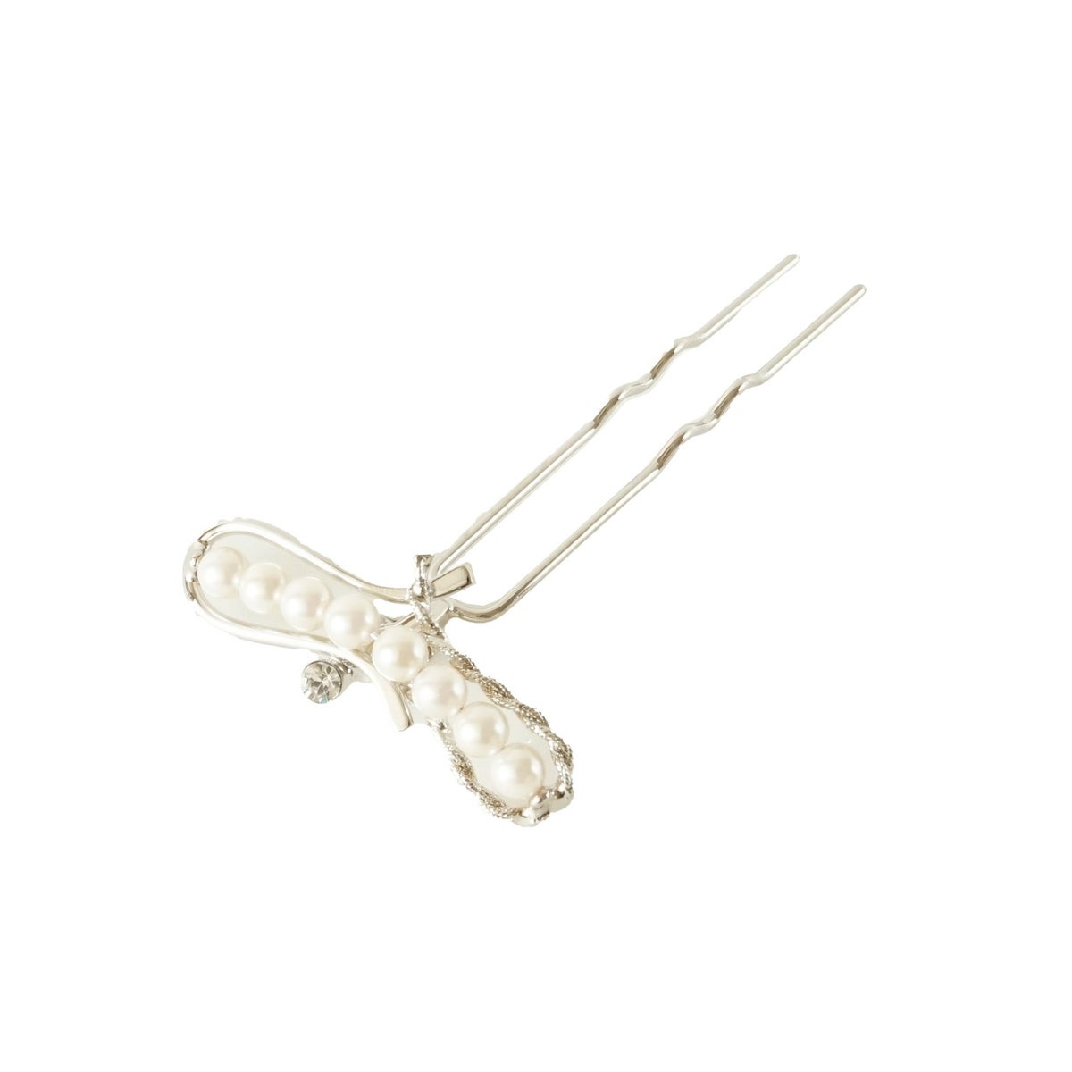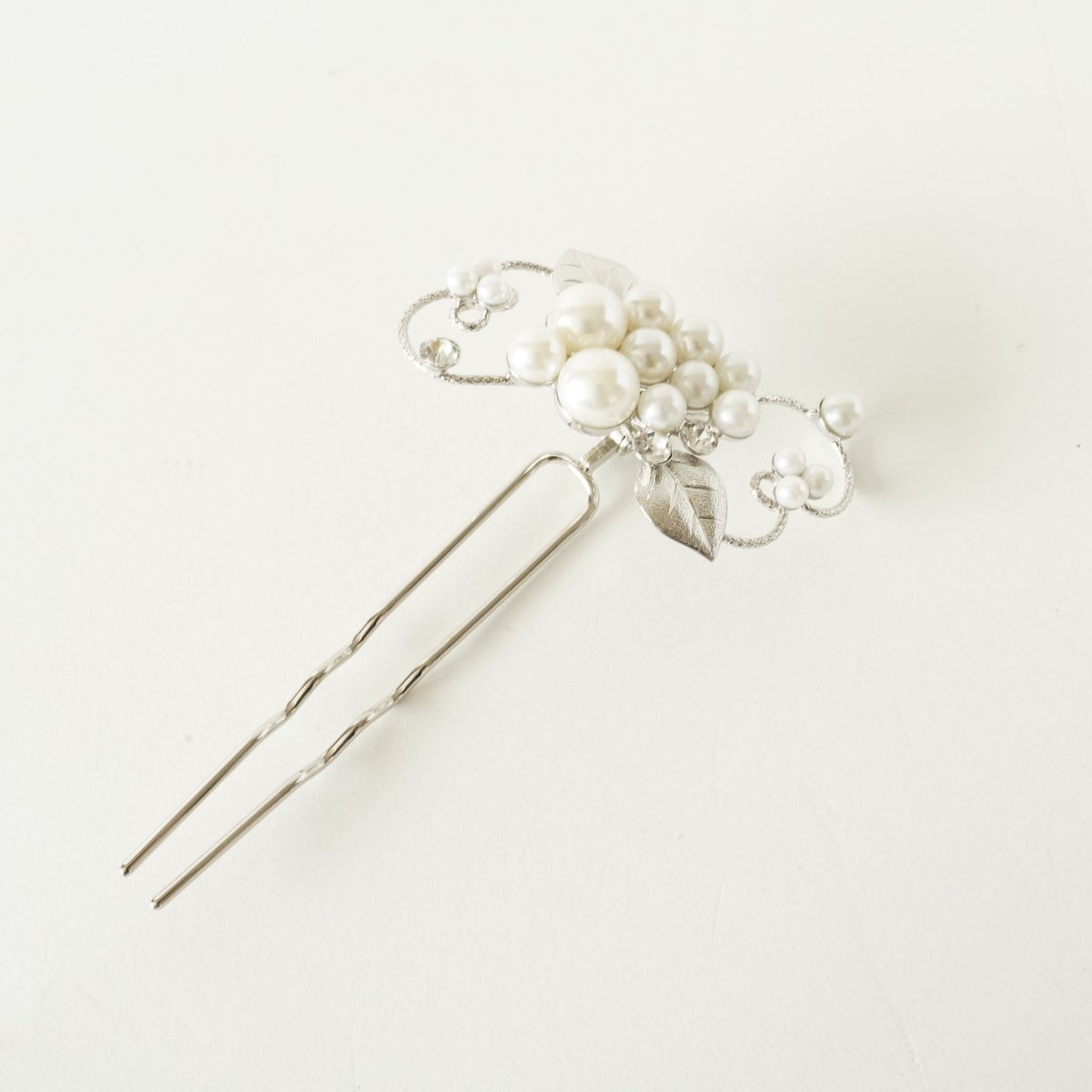 本漆純金蒔絵螺鈿かんざし 波型ピン(小) 白玉椿唐草文様