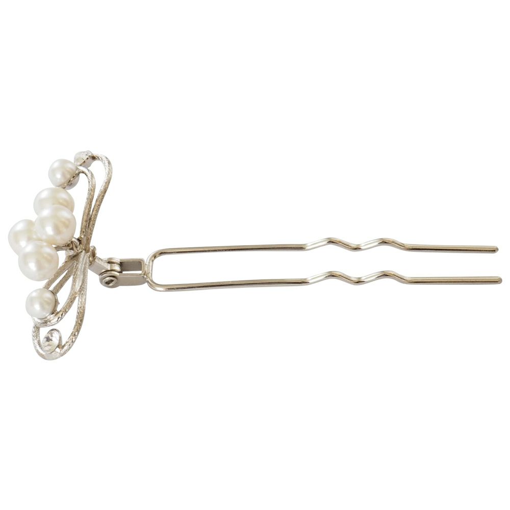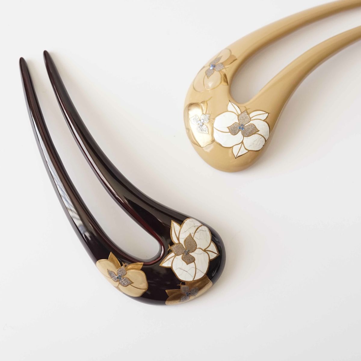 本漆純金蒔絵螺鈿かんざし 変型輪ピン 胡蝶蘭文様