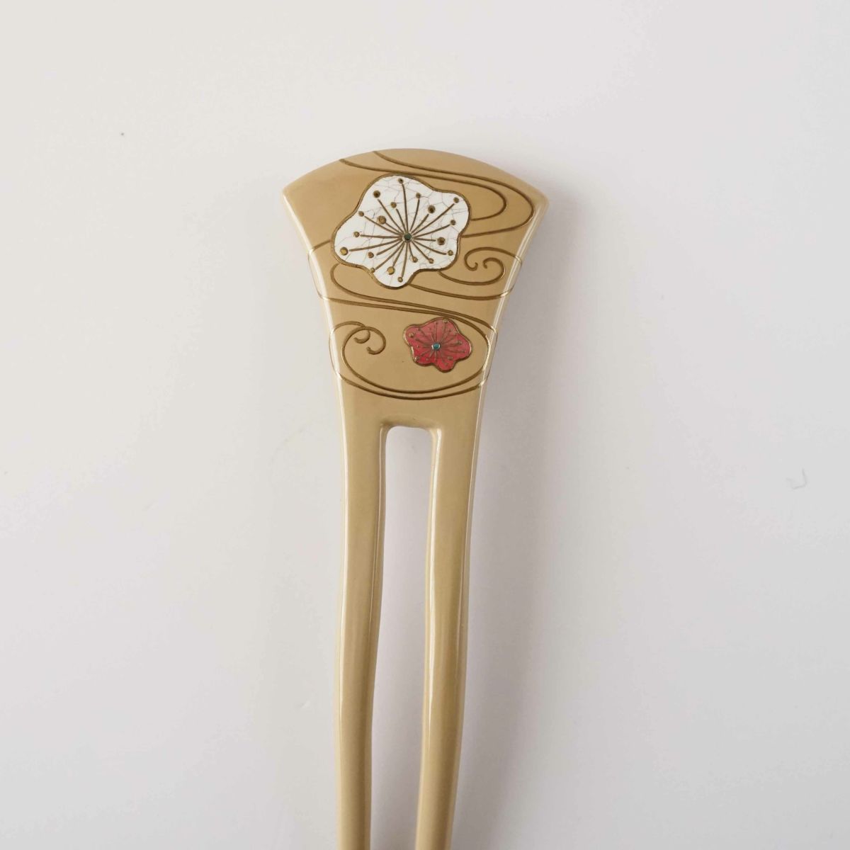 本漆純金蒔絵螺鈿かんざし 新角ピン 光琳梅文様
