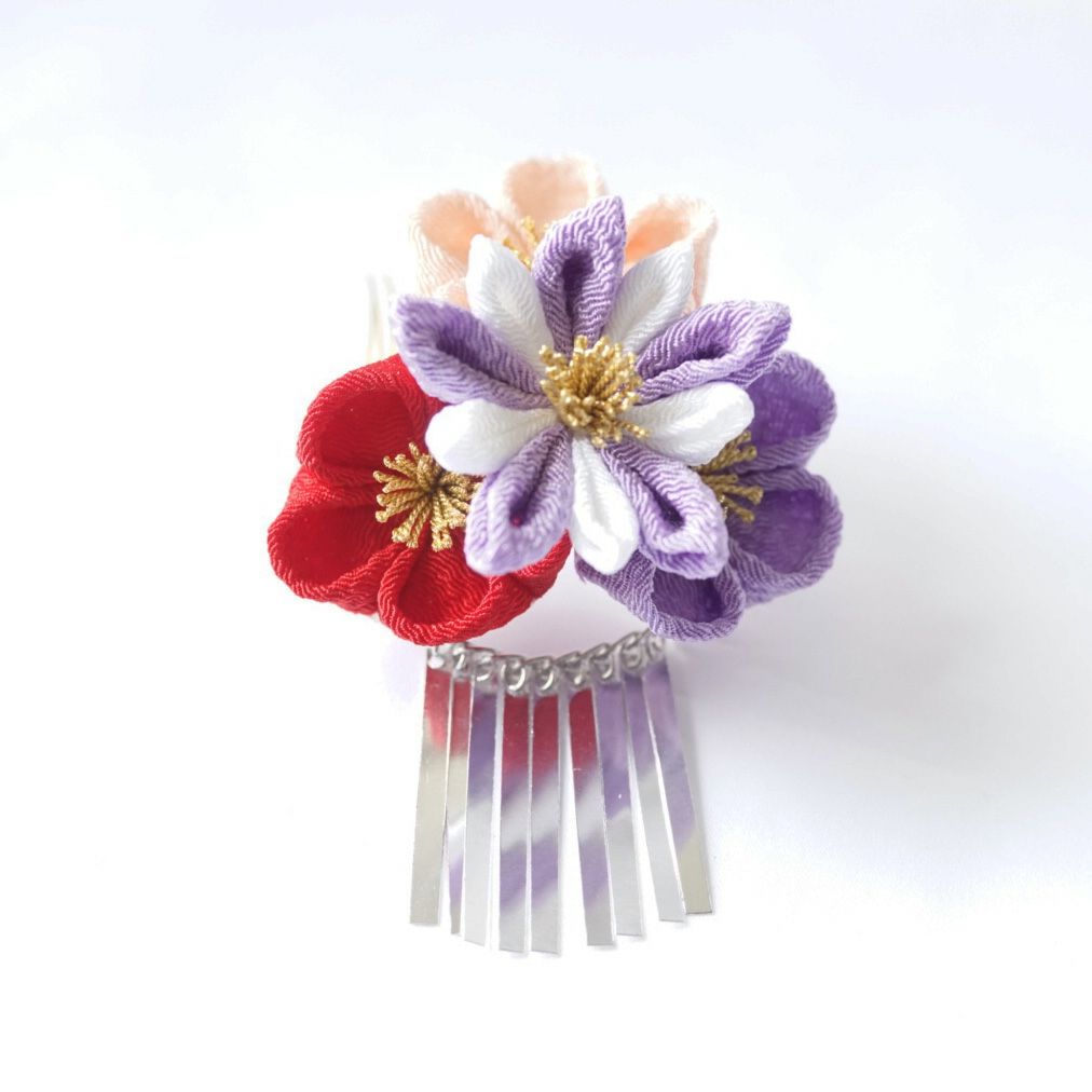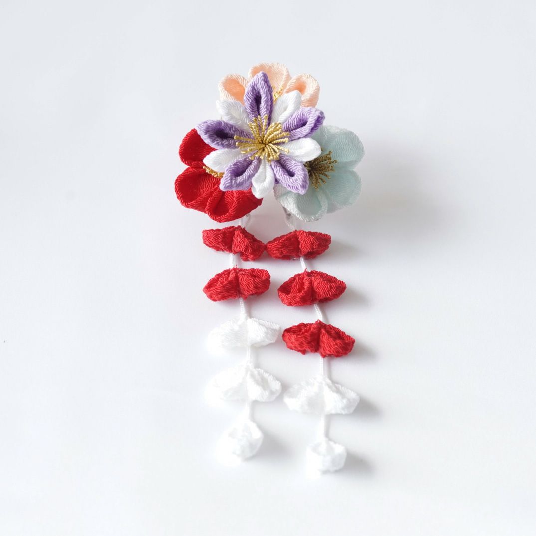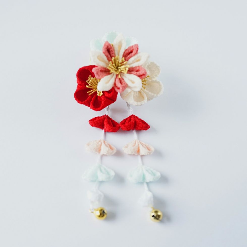 七輪梅かんざし/コーム (鈴下がり付き) 赤白ピンク