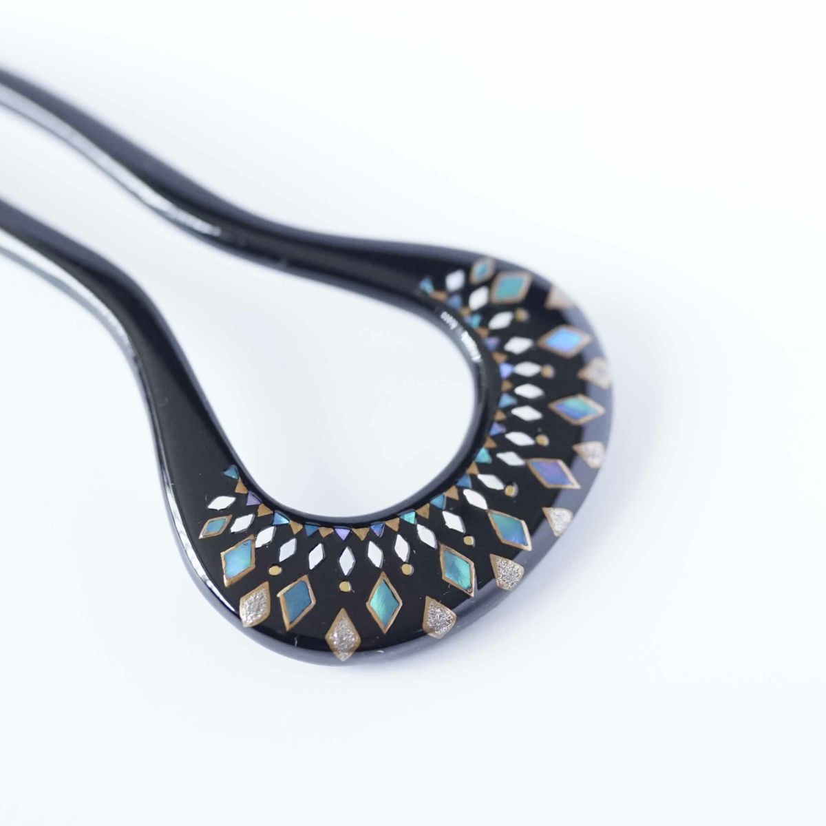 本漆純金蒔絵螺鈿かんざし 波型ピン(小) 宝尽くし文様(白蝶貝・プラチナ)