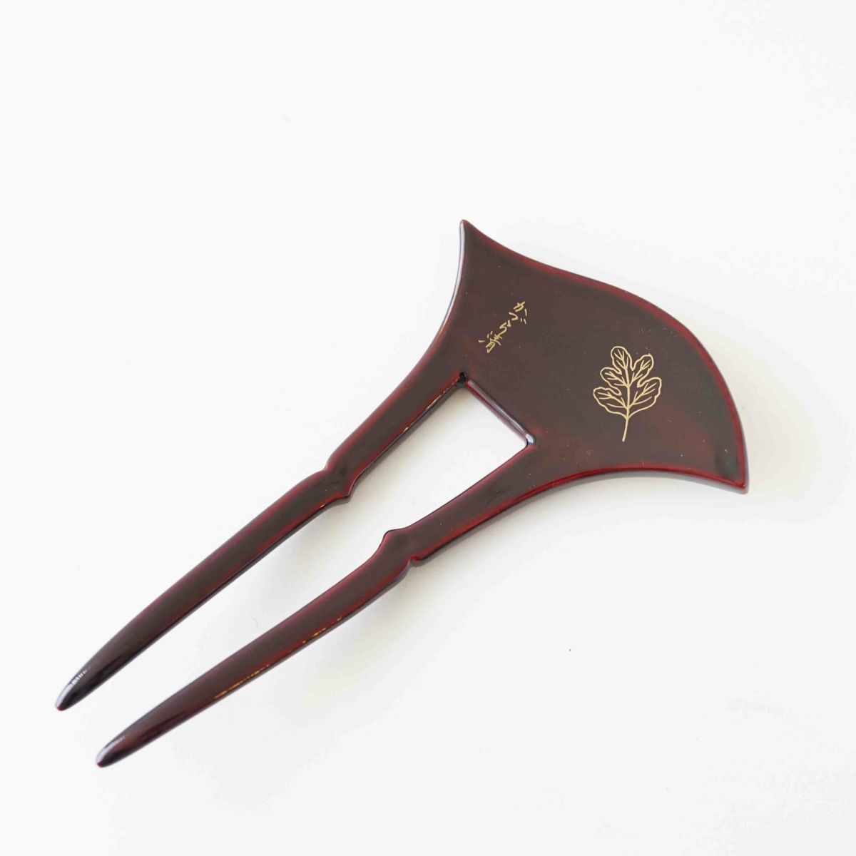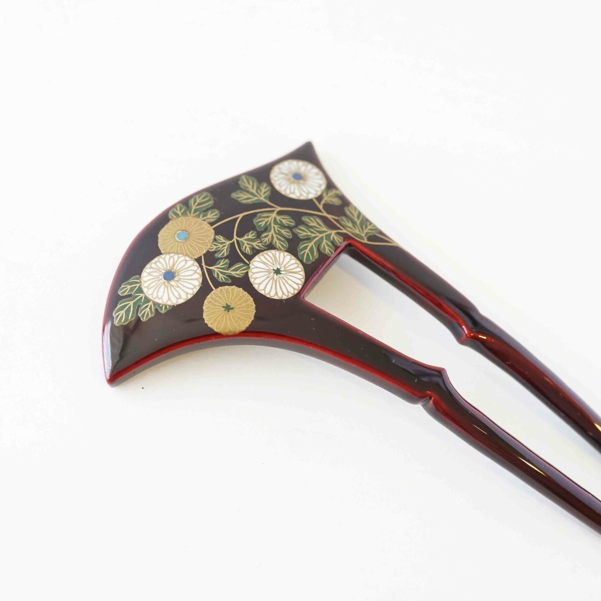 本漆純金蒔絵螺鈿かんざし 波型ピン(中) 万寿菊文様
