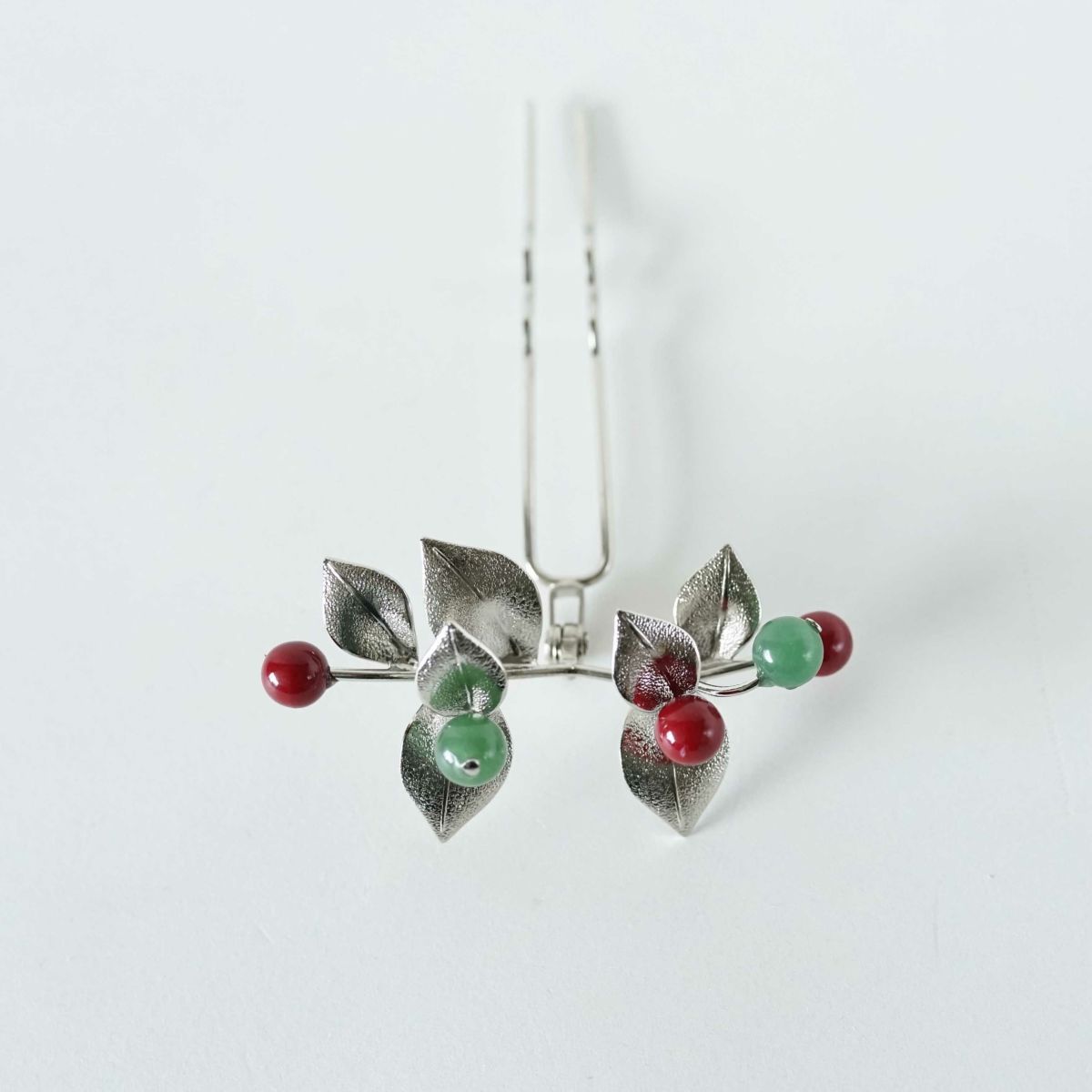 本漆純金蒔絵螺鈿かんざし 銀杏ピン 鉄線唐草文様