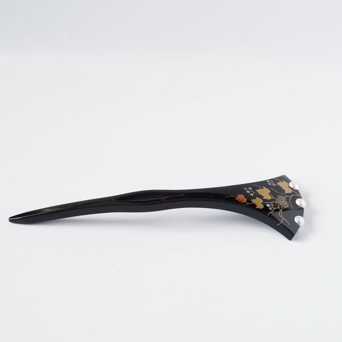 本漆純金蒔絵螺鈿かんざし 波型ピン(中) 万寿菊文様