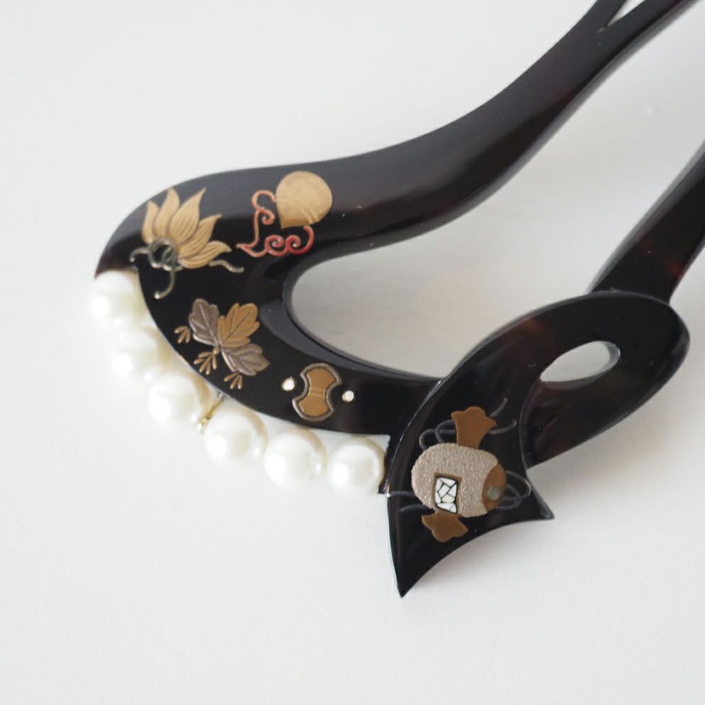 本漆純金蒔絵螺鈿かんざし 波型ピン(小) 宝尽くし文様(白蝶貝・プラチナ)