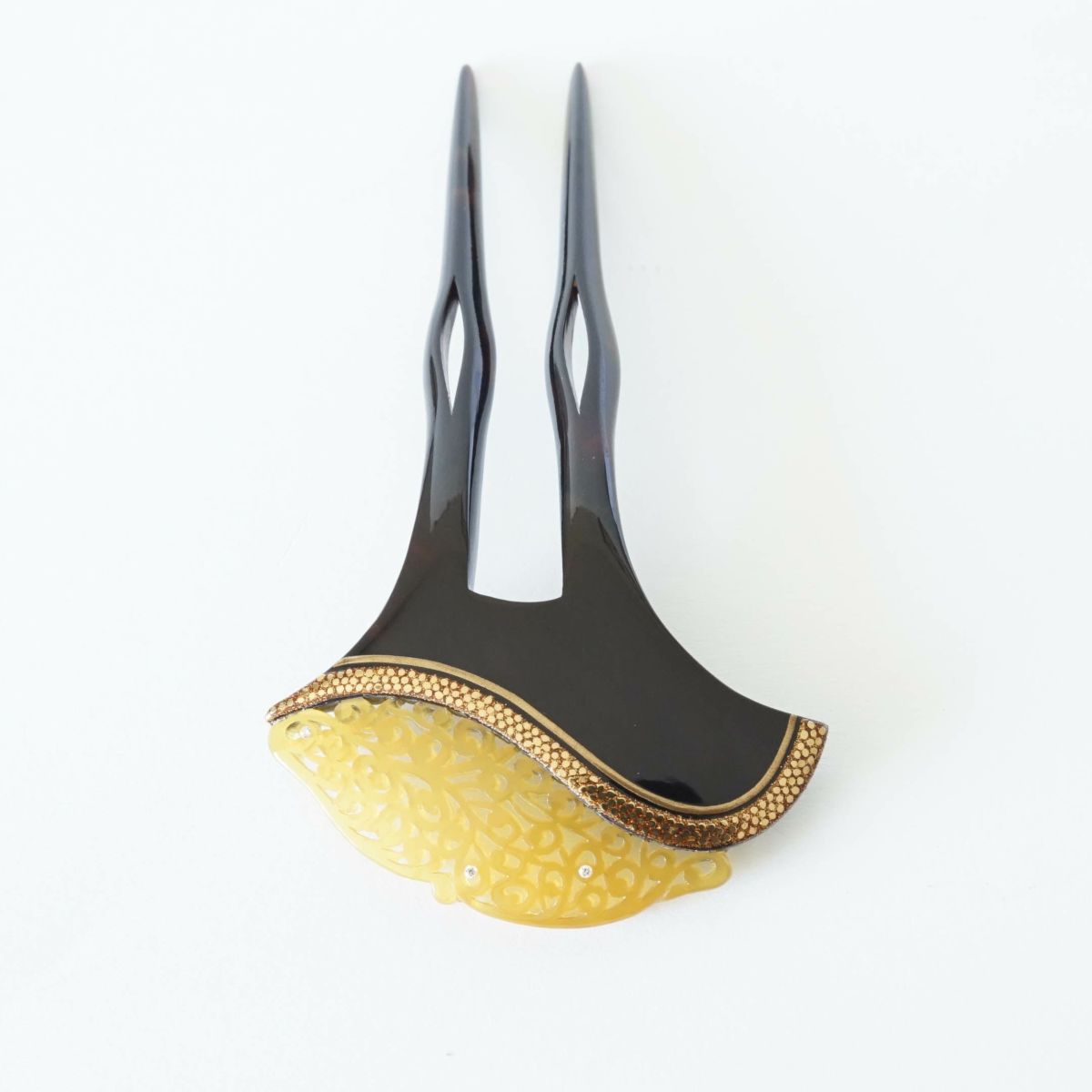 本漆純金蒔絵螺鈿かんざし 波型ピン(中)正倉院文様