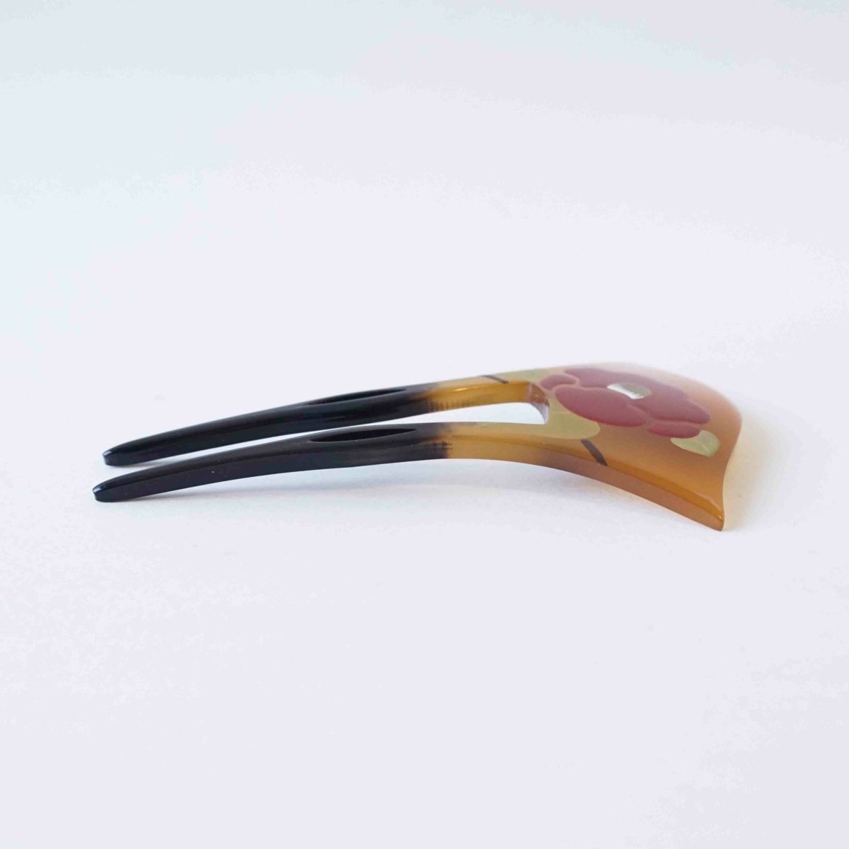 本漆純金蒔絵螺鈿かんざし 波型ピン(中) 牡丹文様