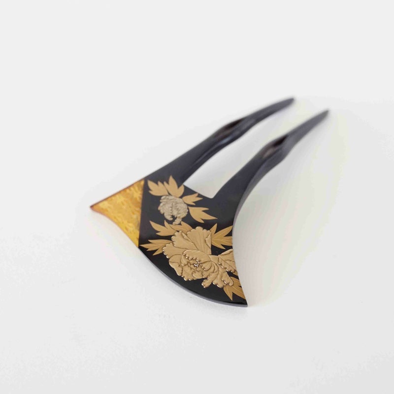 本べっ甲 純金蒔絵螺鈿かんざし モダン蒔絵(透かし彫りダイヤ) 大