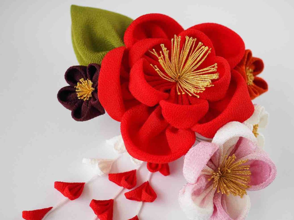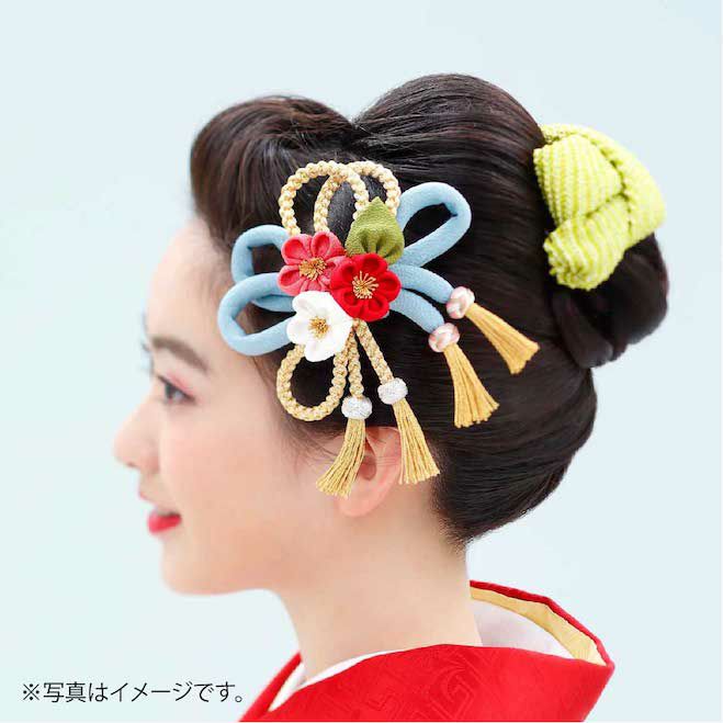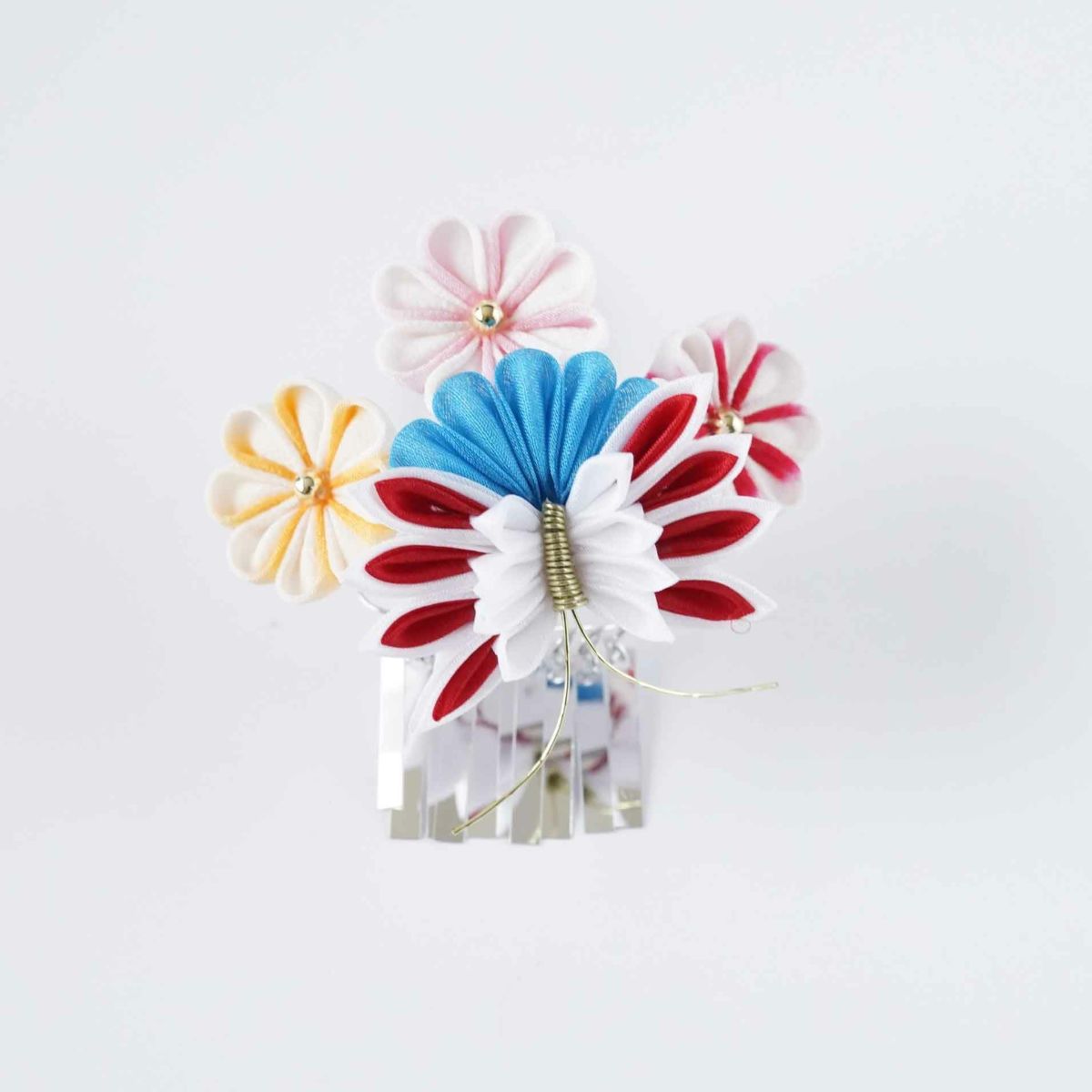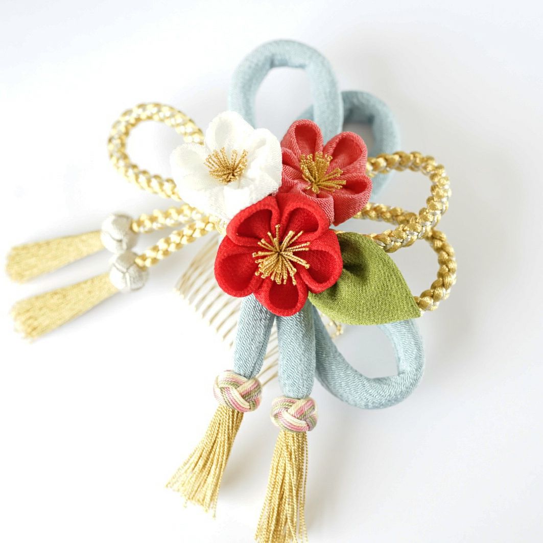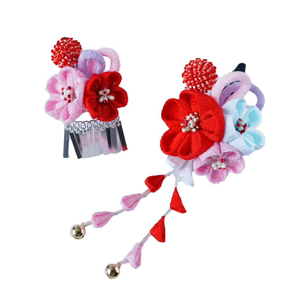 七五三用髪飾り 蝶付き梅三輪かんざし ちんころ付き セット