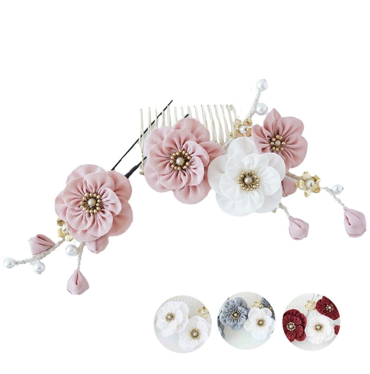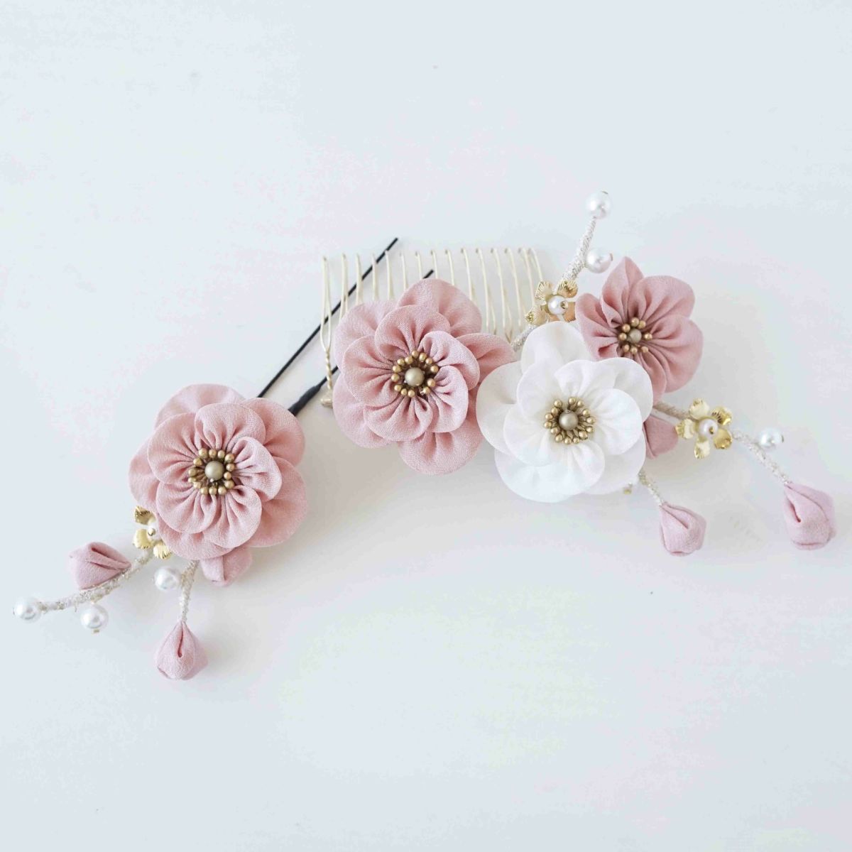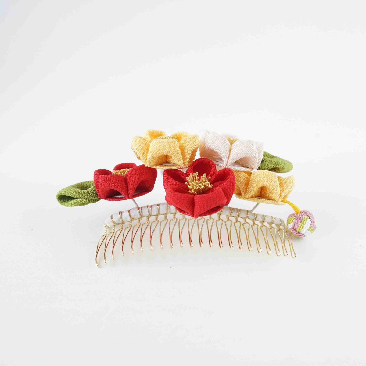 七輪梅かんざし/コーム (鈴下がり付き) 赤白ピンク
