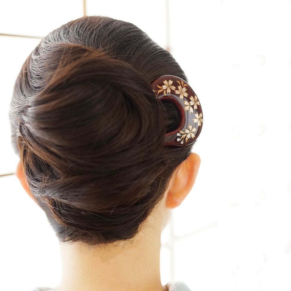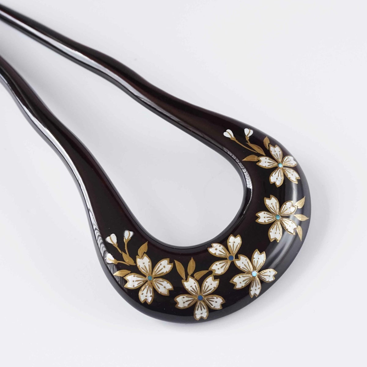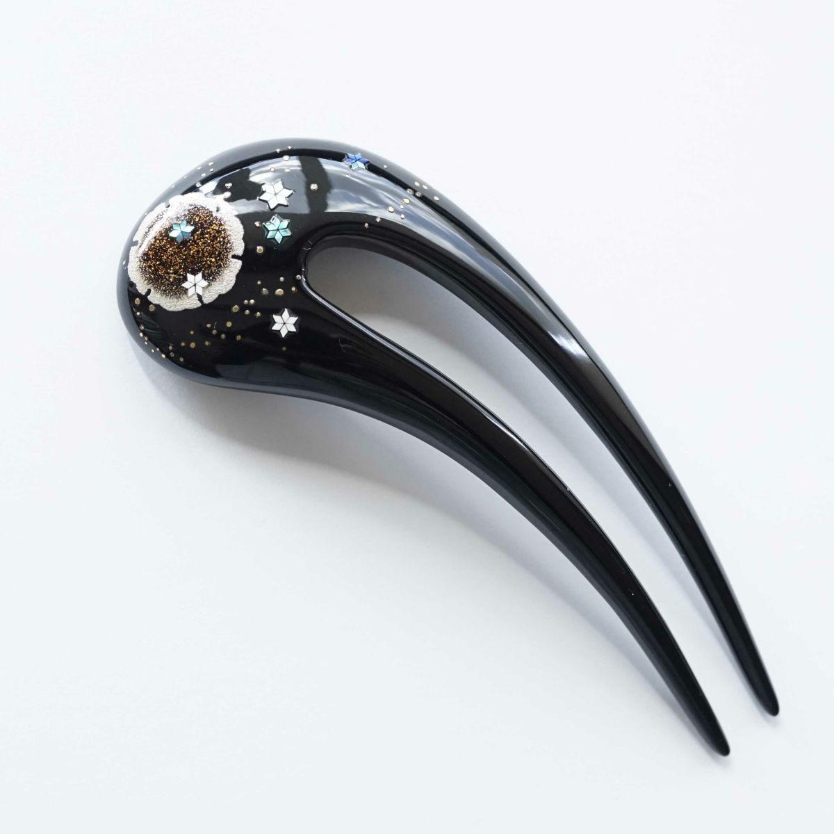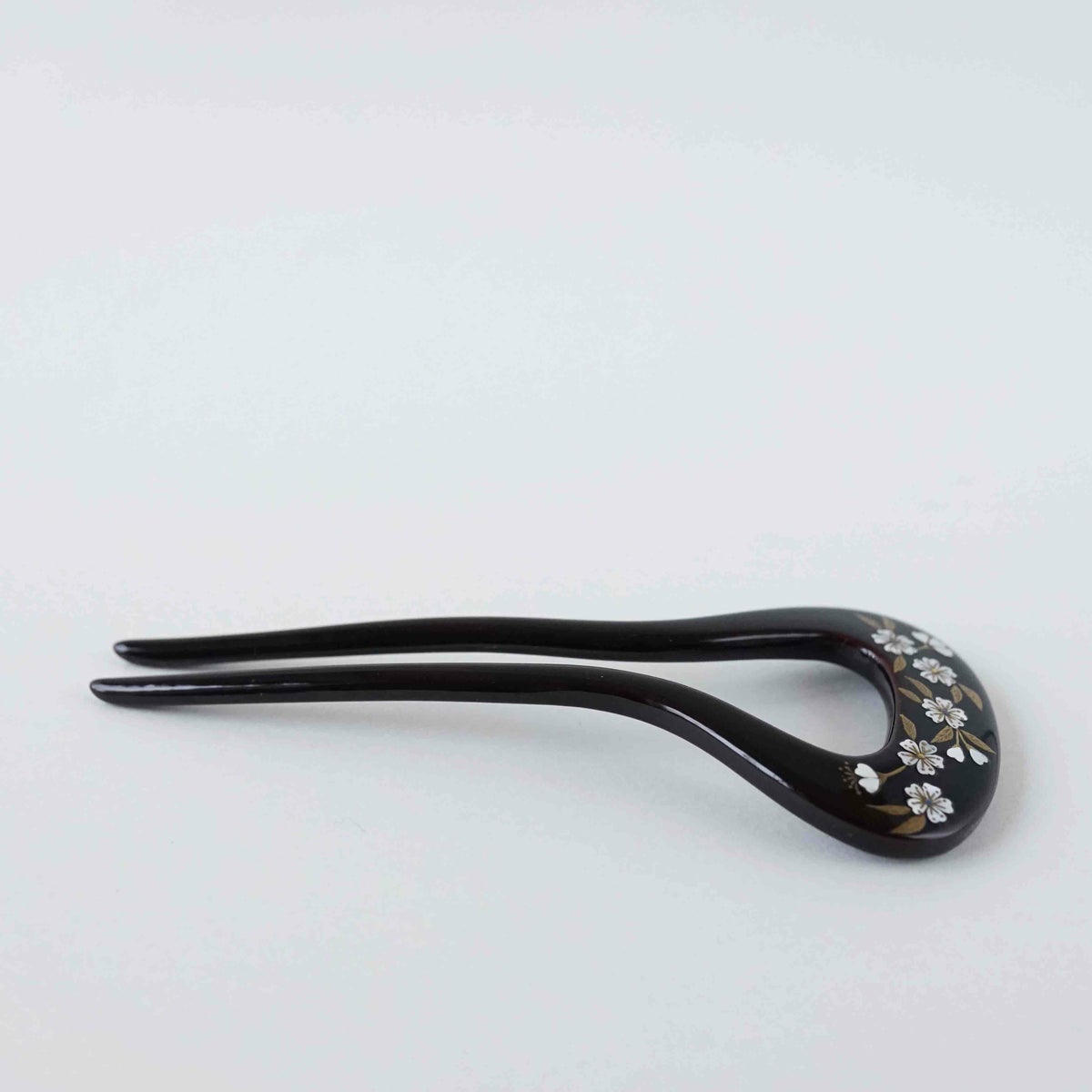 本漆純金蒔絵螺鈿かんざし 変型輪ピン 桜文様(黒色)