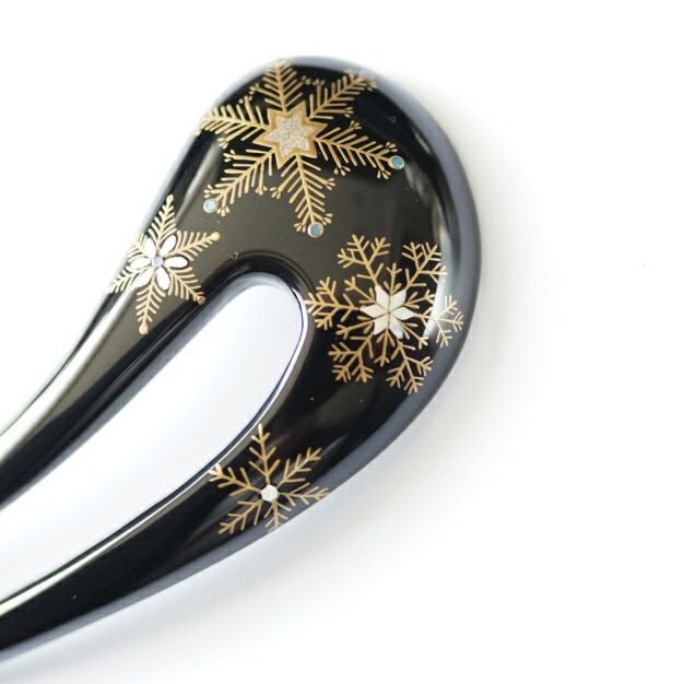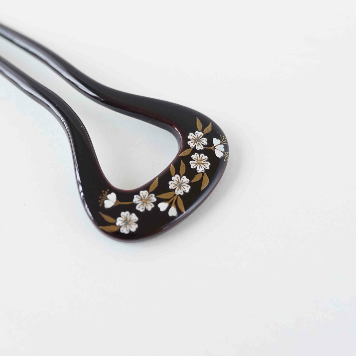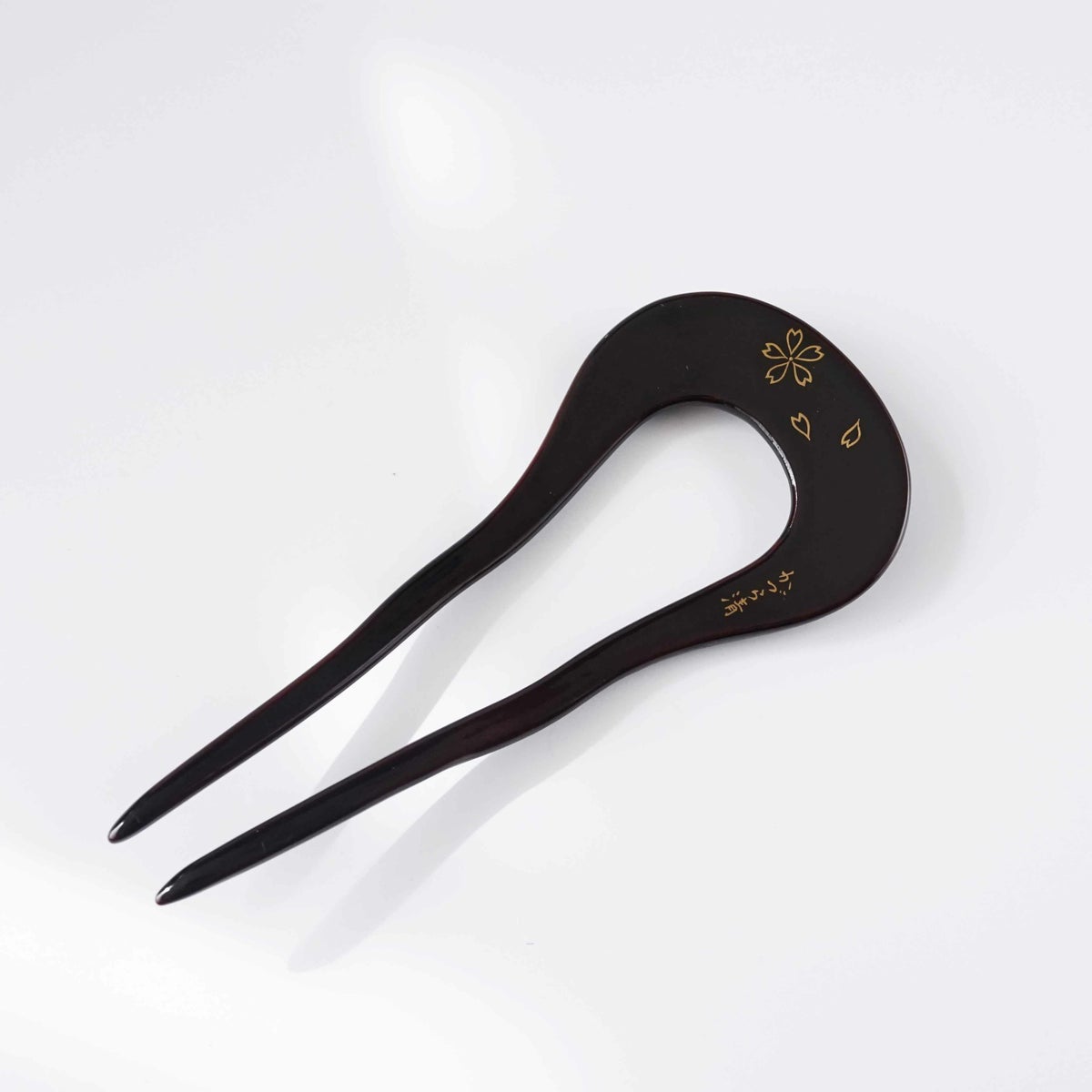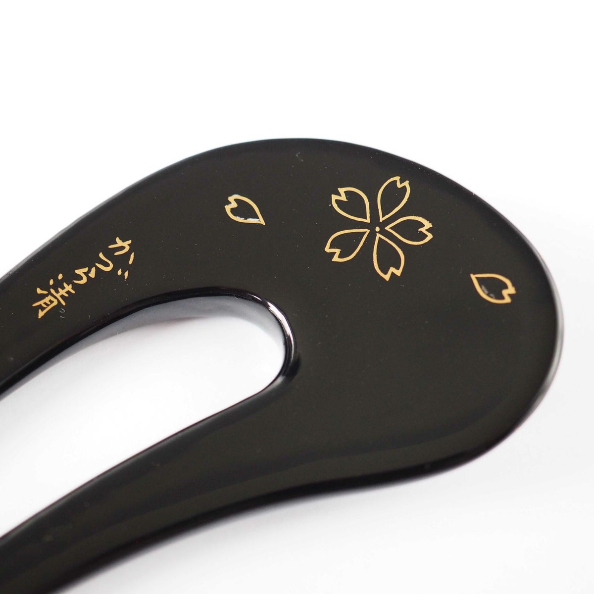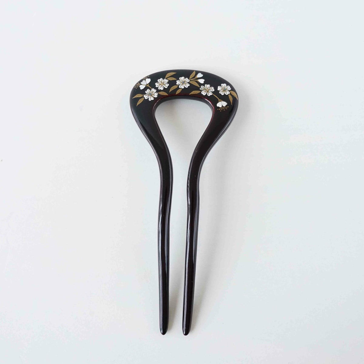 本漆純金蒔絵螺鈿かんざし 変型輪ピン 桜文様(黒色)