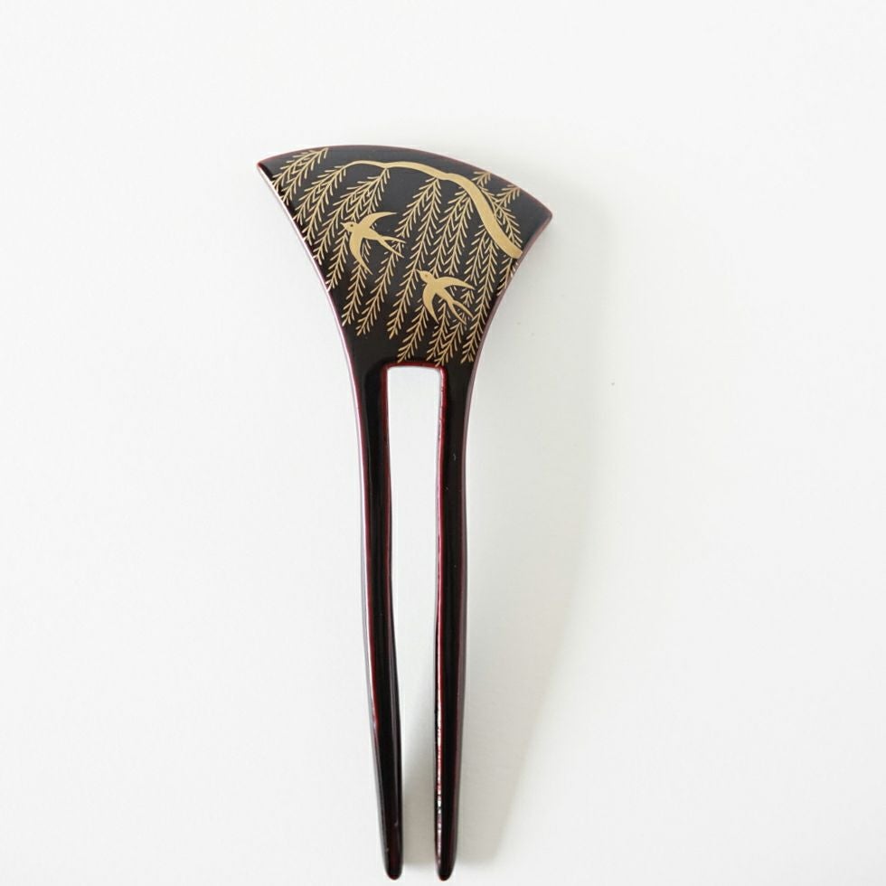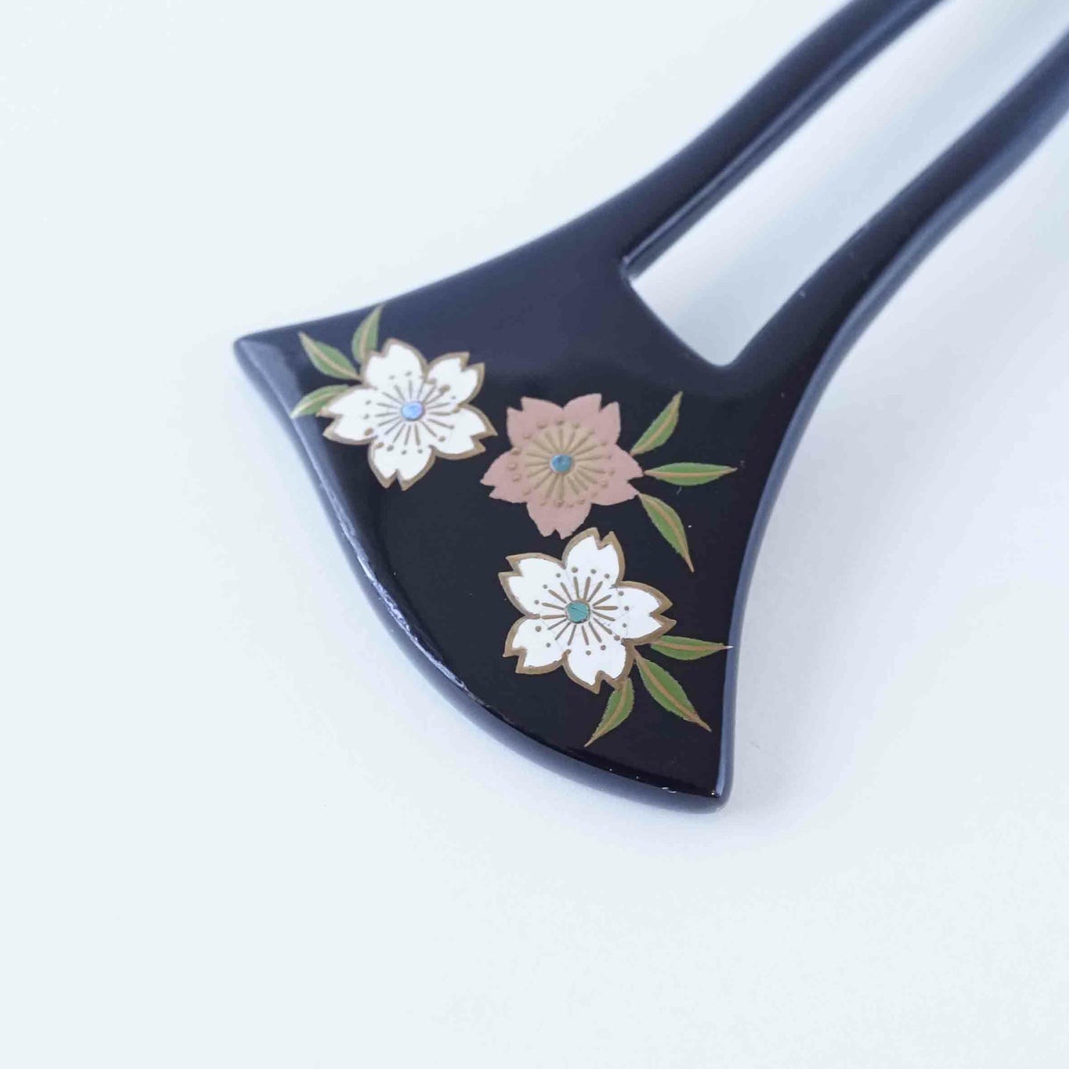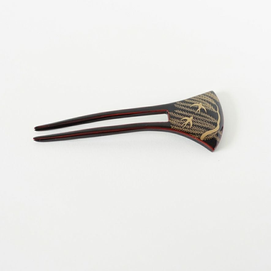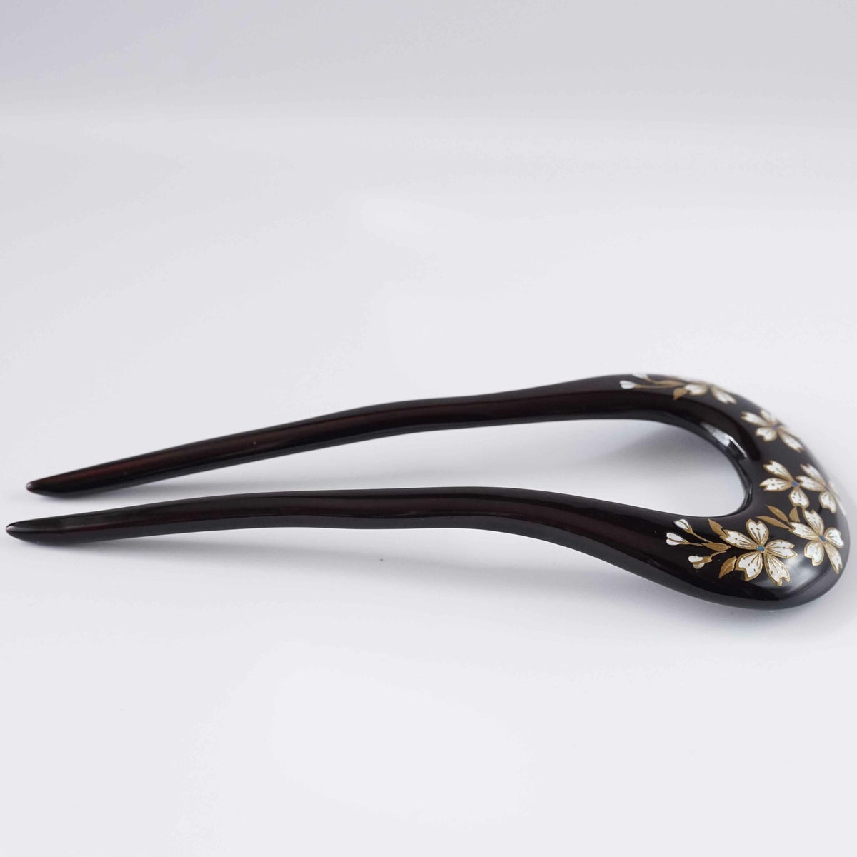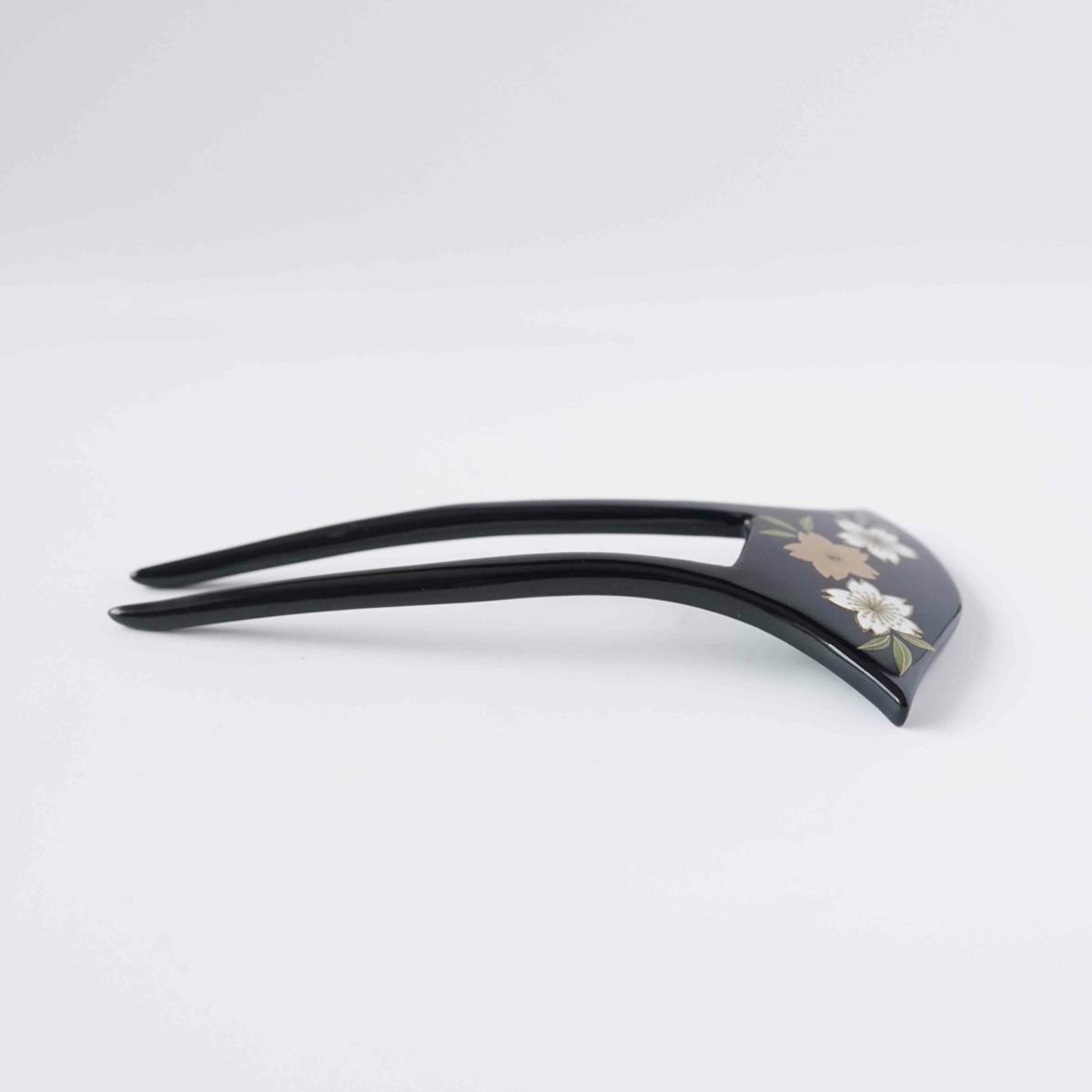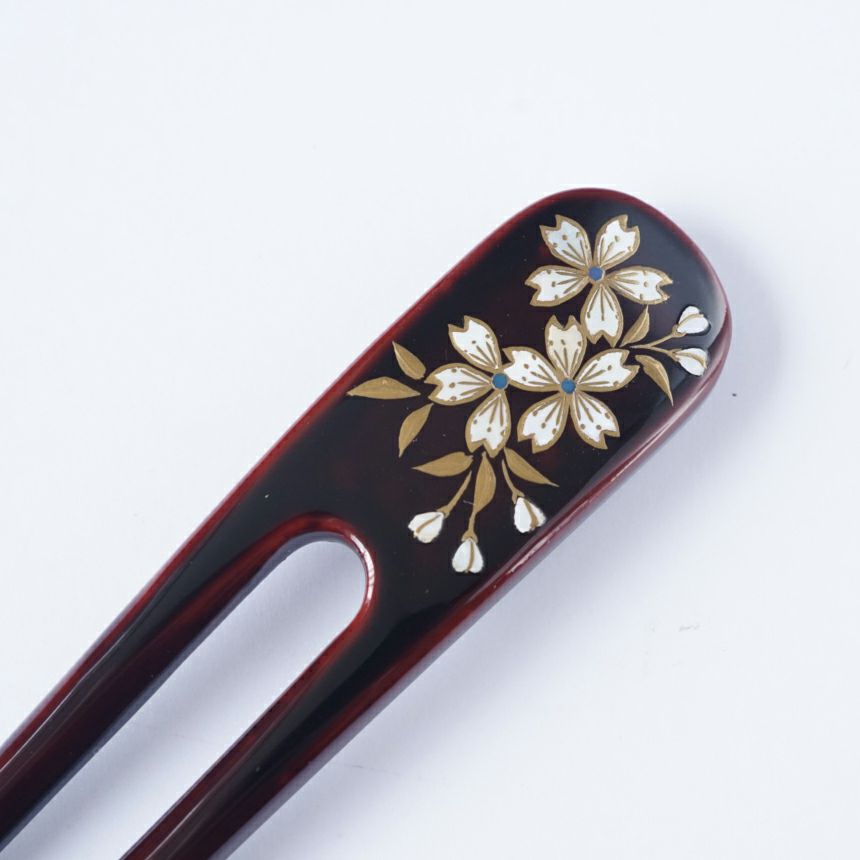 本漆純金蒔絵螺鈿かんざし 波型ピン(小) 三輪桜