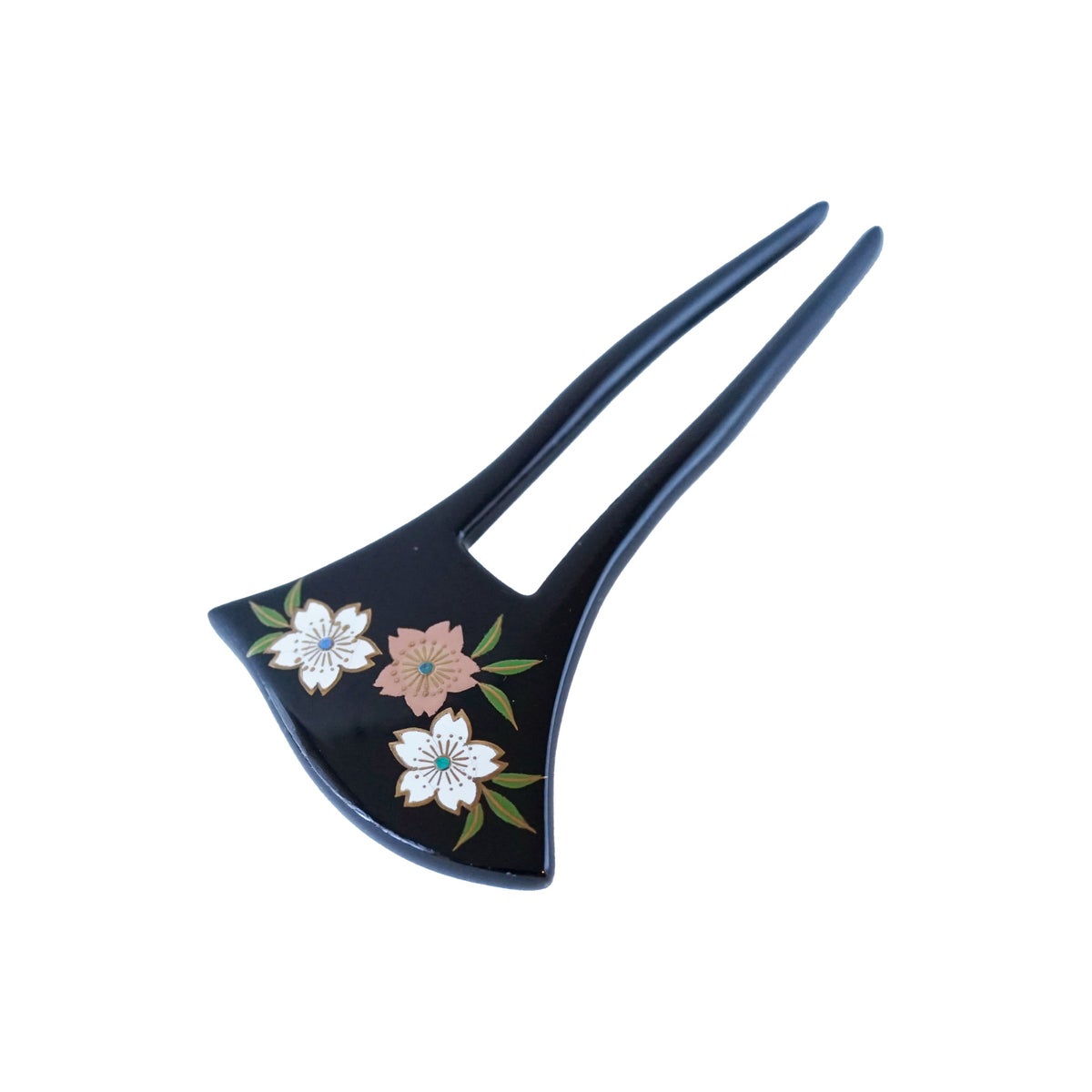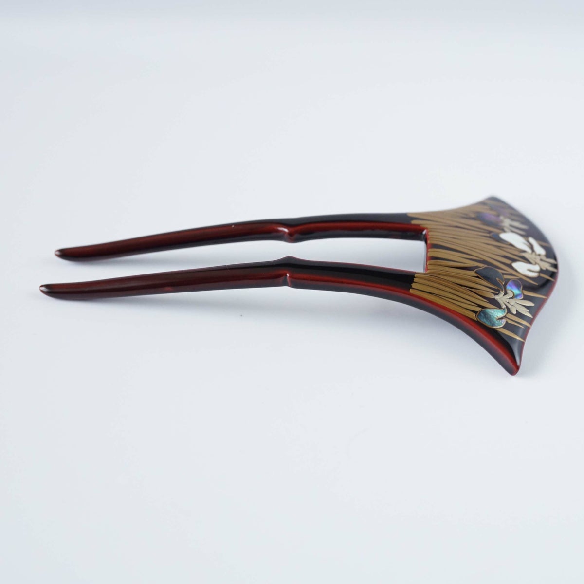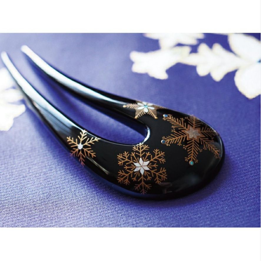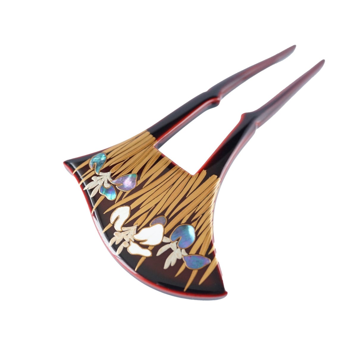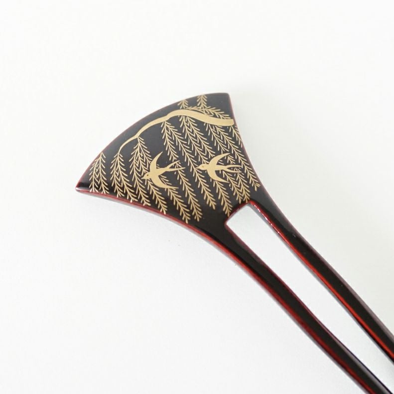 本漆純金蒔絵螺鈿かんざし 波型ピン(小) 三輪桜
