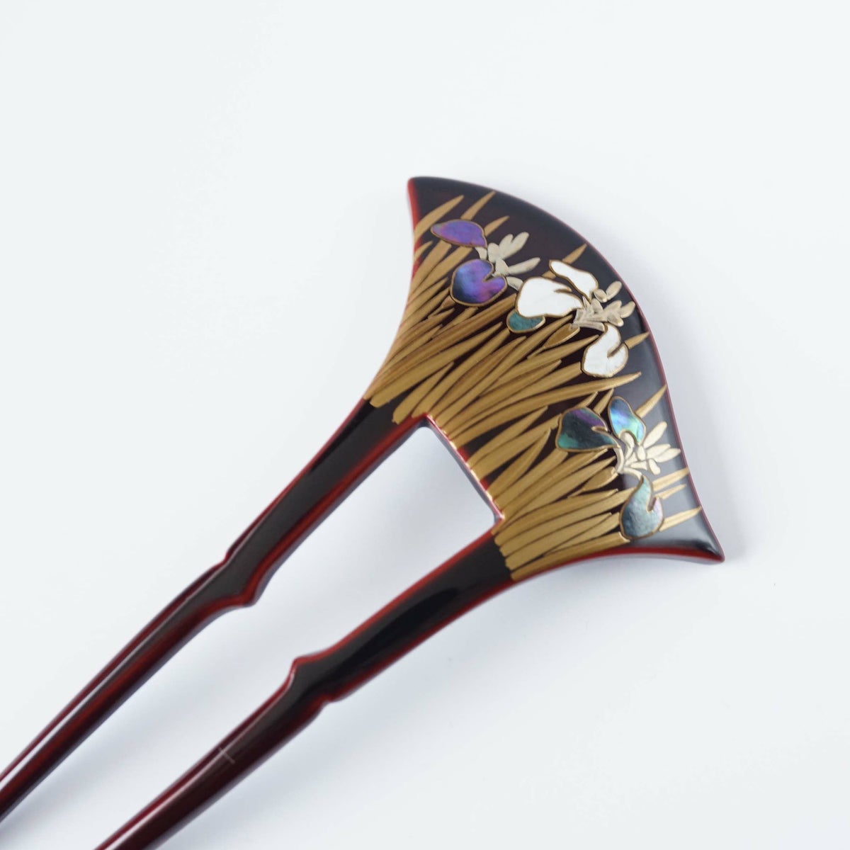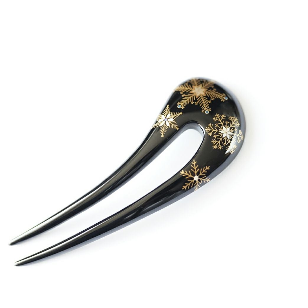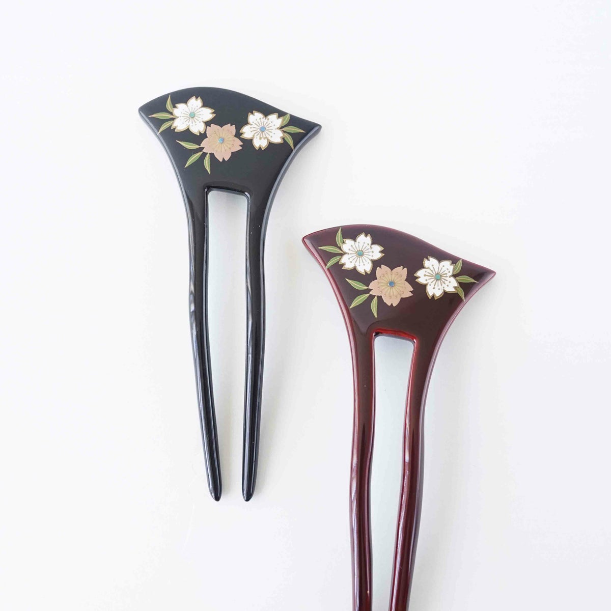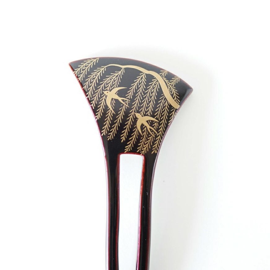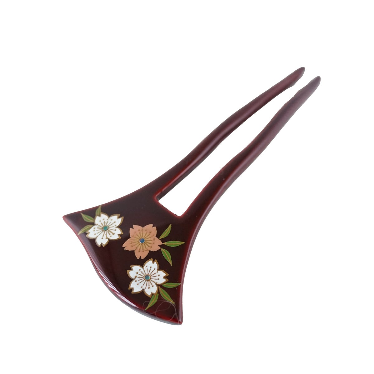 本漆純金蒔絵螺鈿かんざし 波型ピン(小) 三輪桜