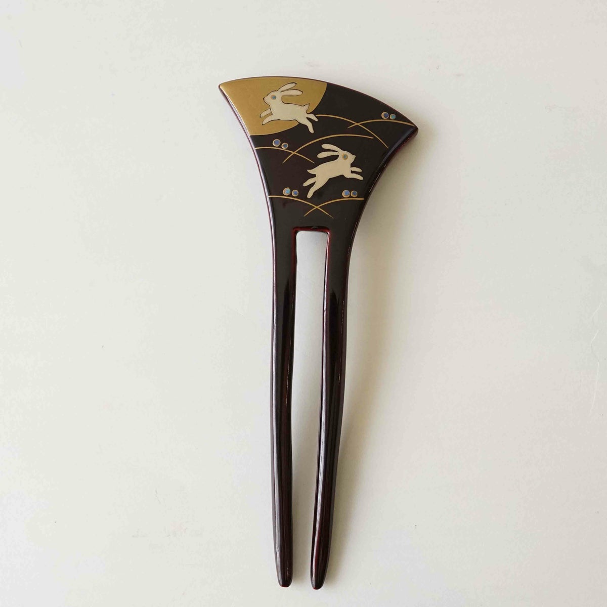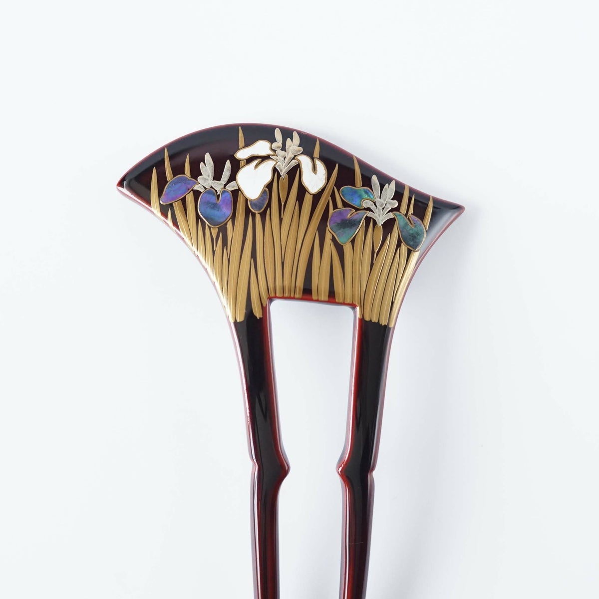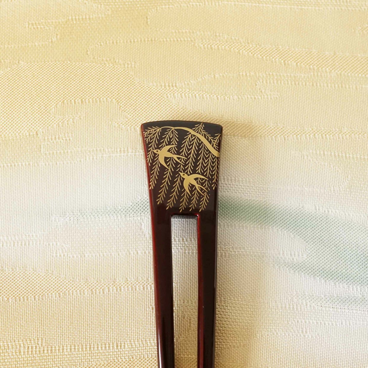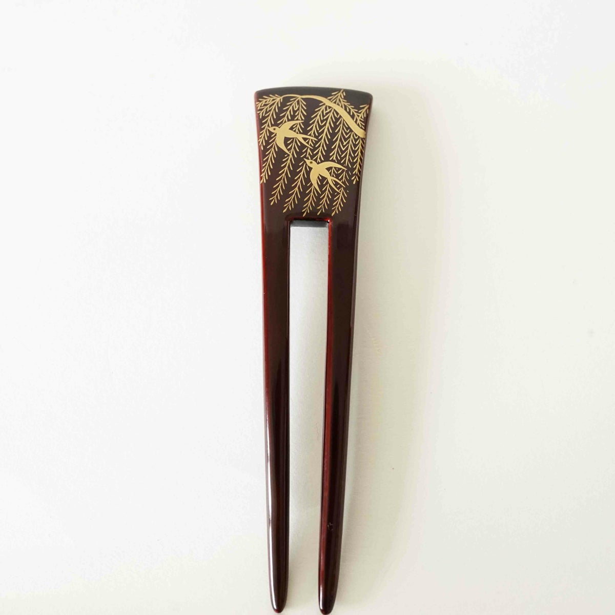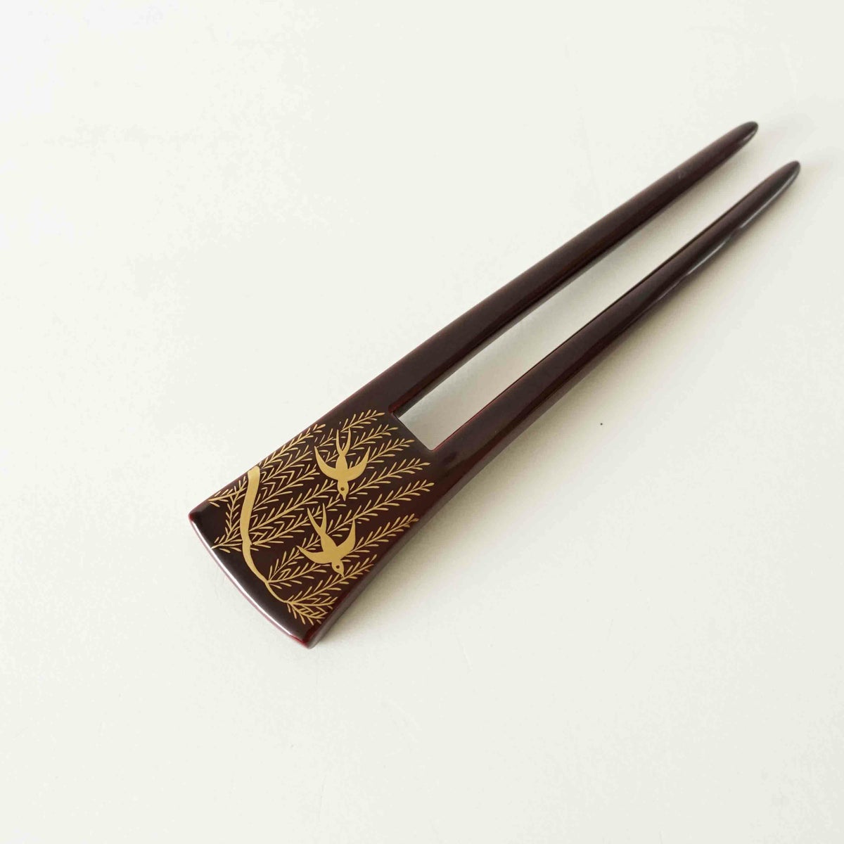 本漆純金蒔絵螺鈿かんざし 波型ピン(小) 三輪桜